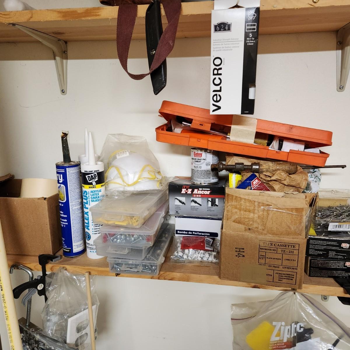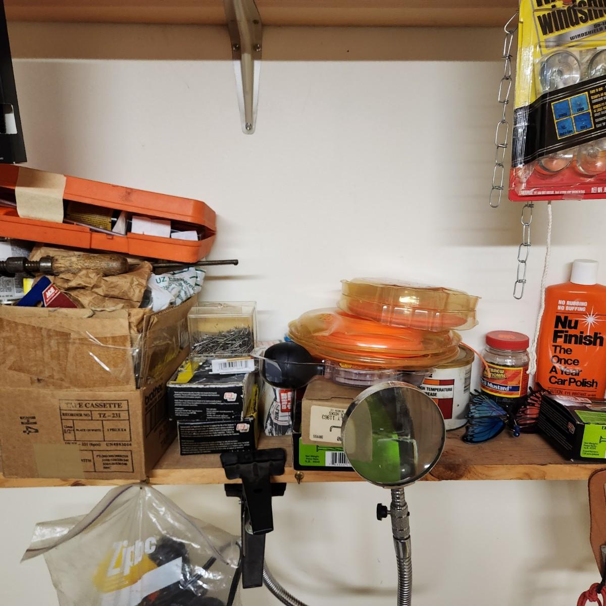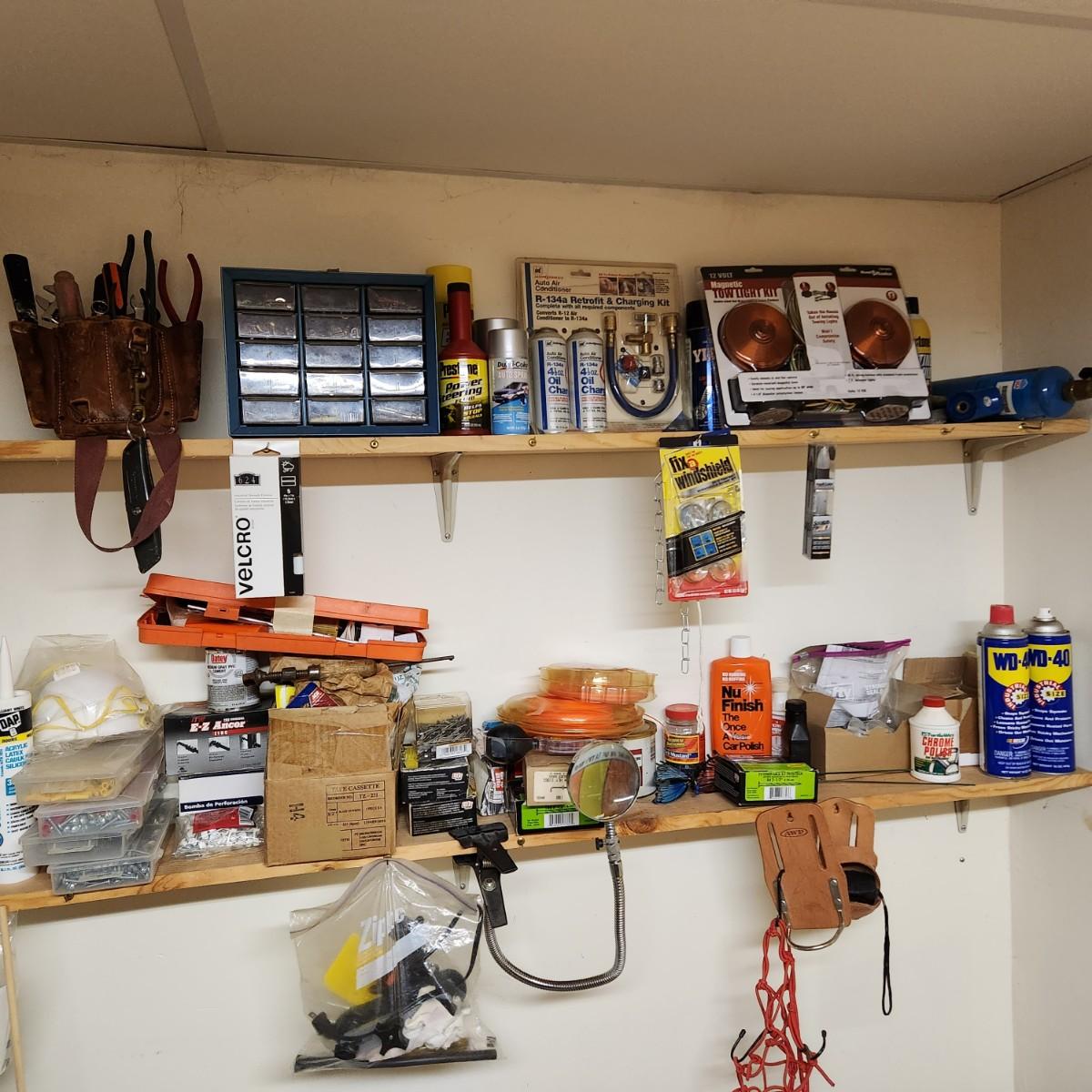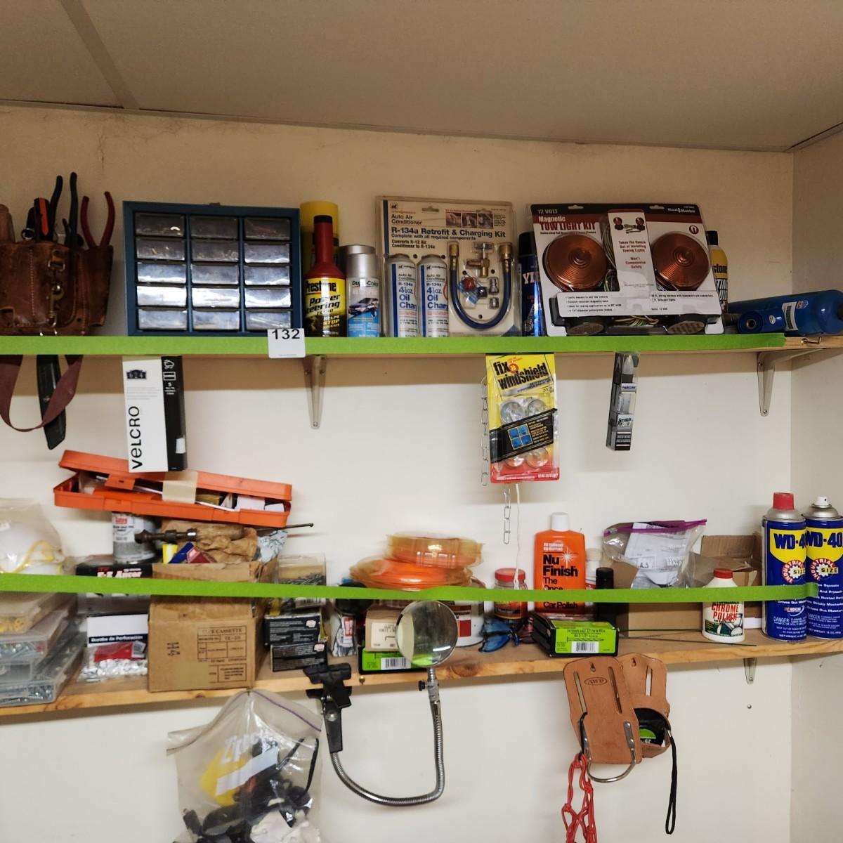 2 Wall Shelves of Misc. Tools , Car supplies,