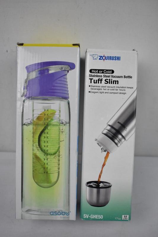 2 Water Bottles: Plastic Infusion 20 oz & Metal 17 oz - New