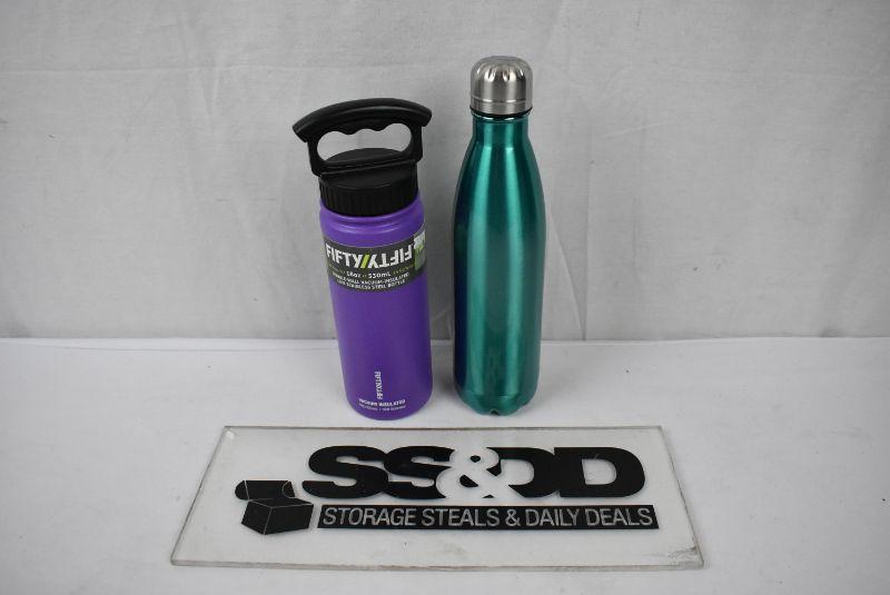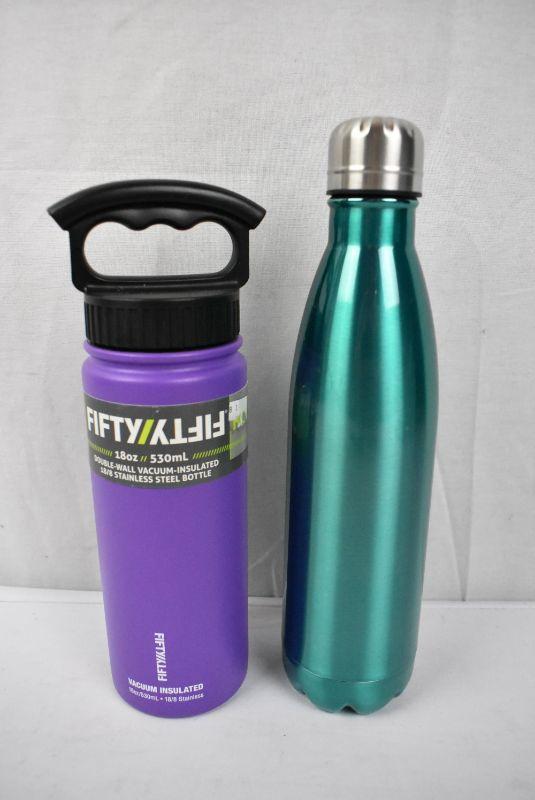 2 Water Bottles: Purple 18 oz & Metal Teal - New