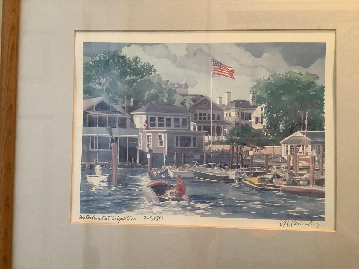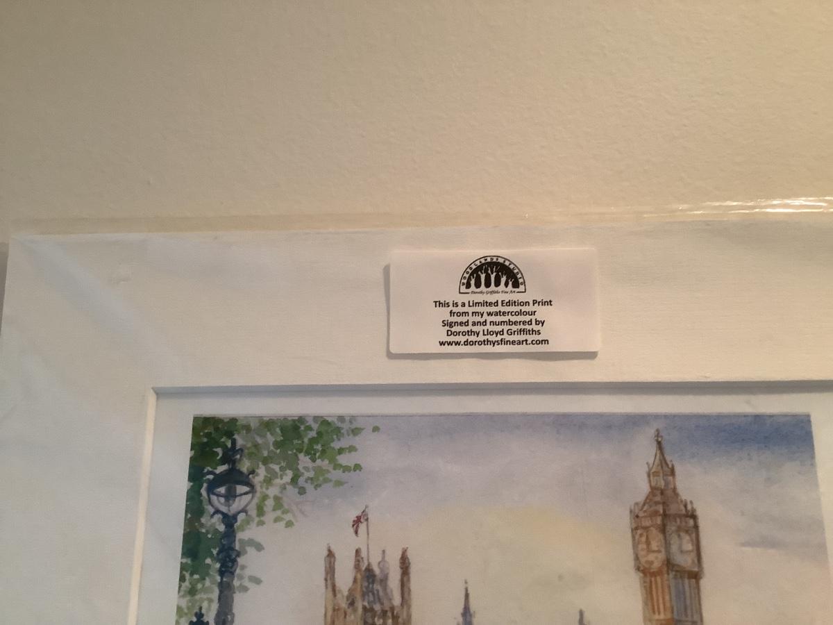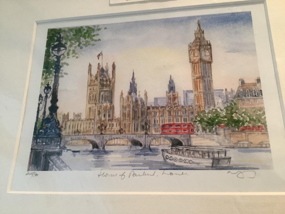 2 watercolors Robert Kennedy Waterfront @ Edgartown, Dorothy Lloyd Griffith Houses of Parliment