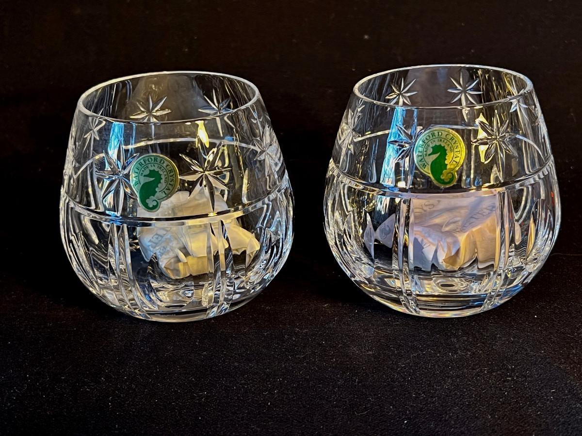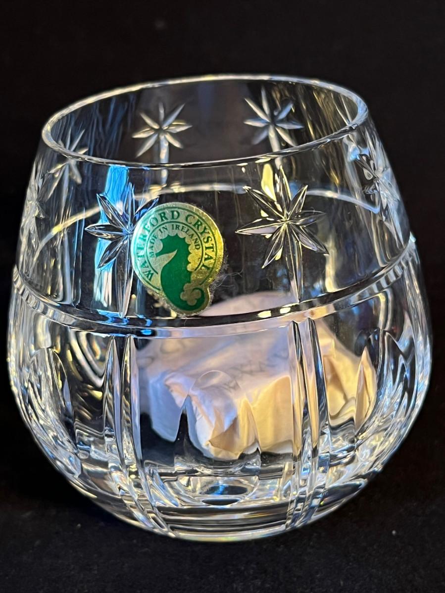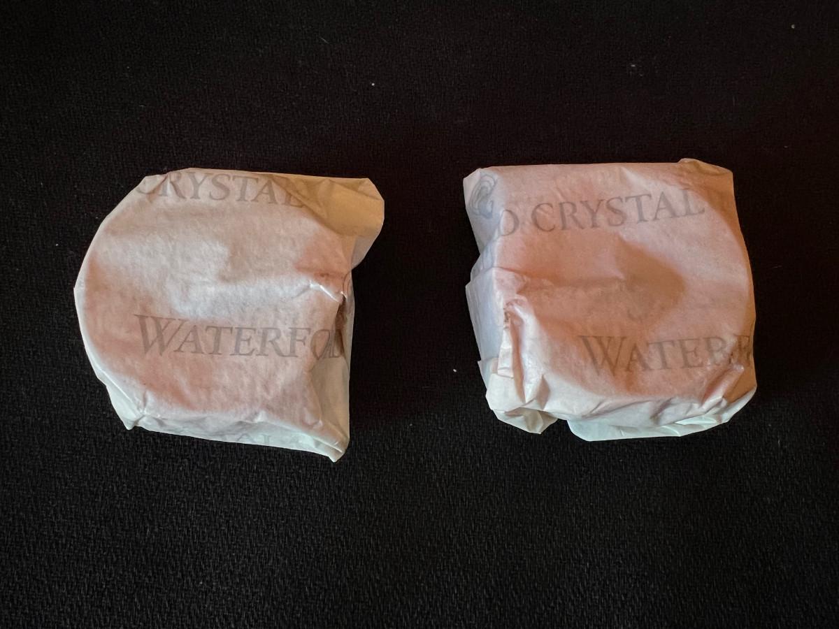 Set of 2 Waterford Christmas Holiday Crystal Votive Vases. Unused! Votives are still wrapped in tissue. Red, removable holiday ribbon in perfect condition. 3 1/2" tall Stickers intact.