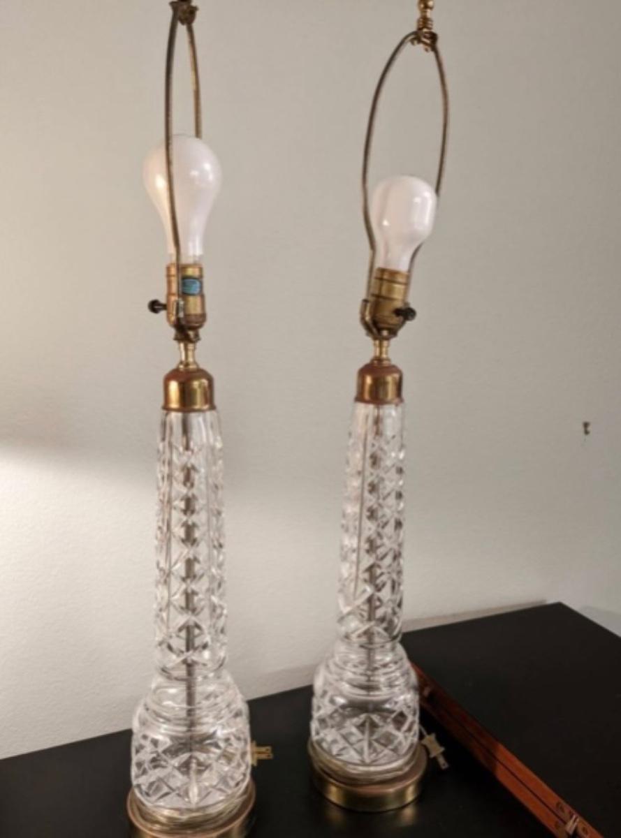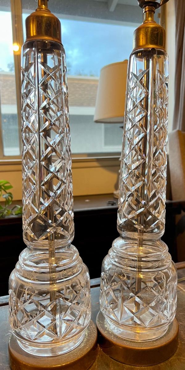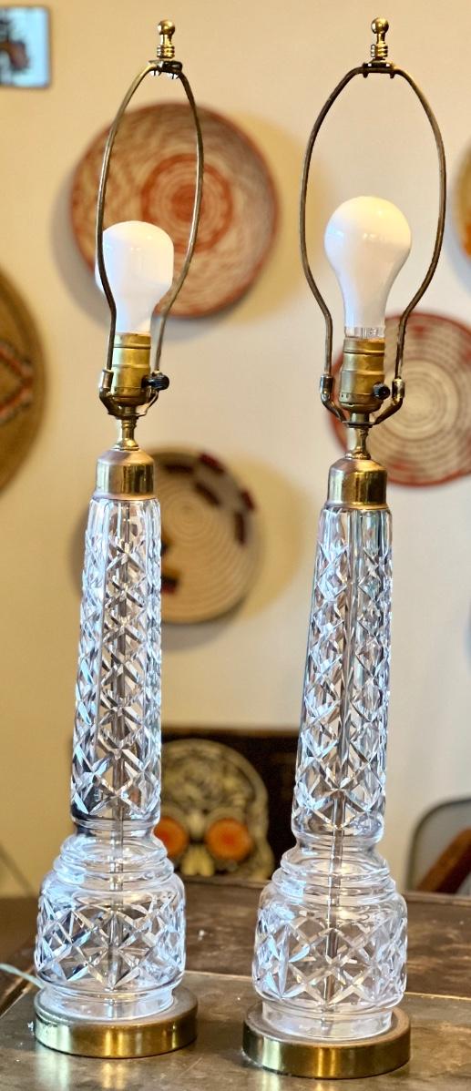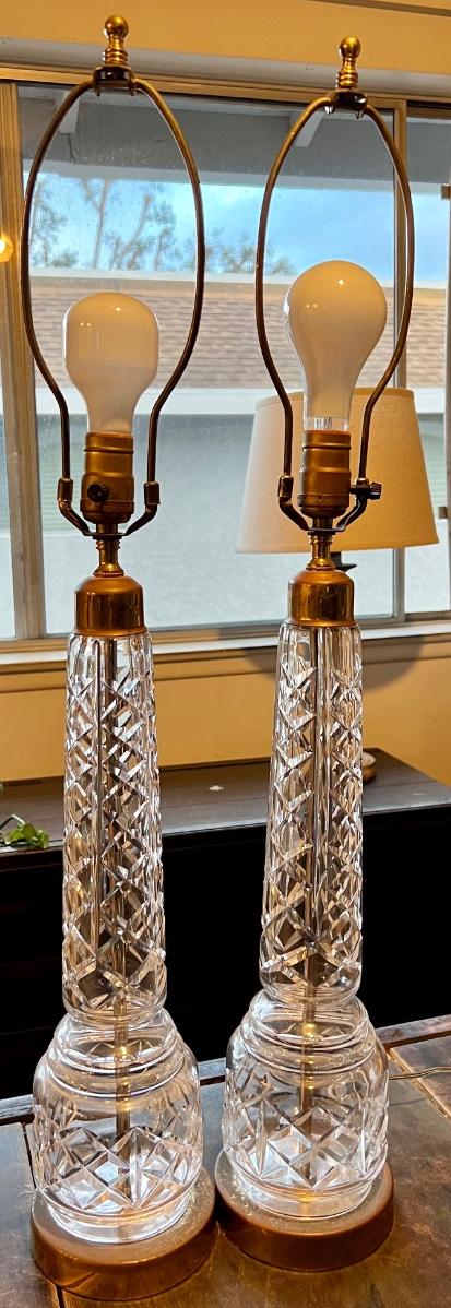 Two gorgeous Waterford lamps. In working condition with vintage wear, as shown in photos. 31 inches tall, 5in base, 6 foot cord.