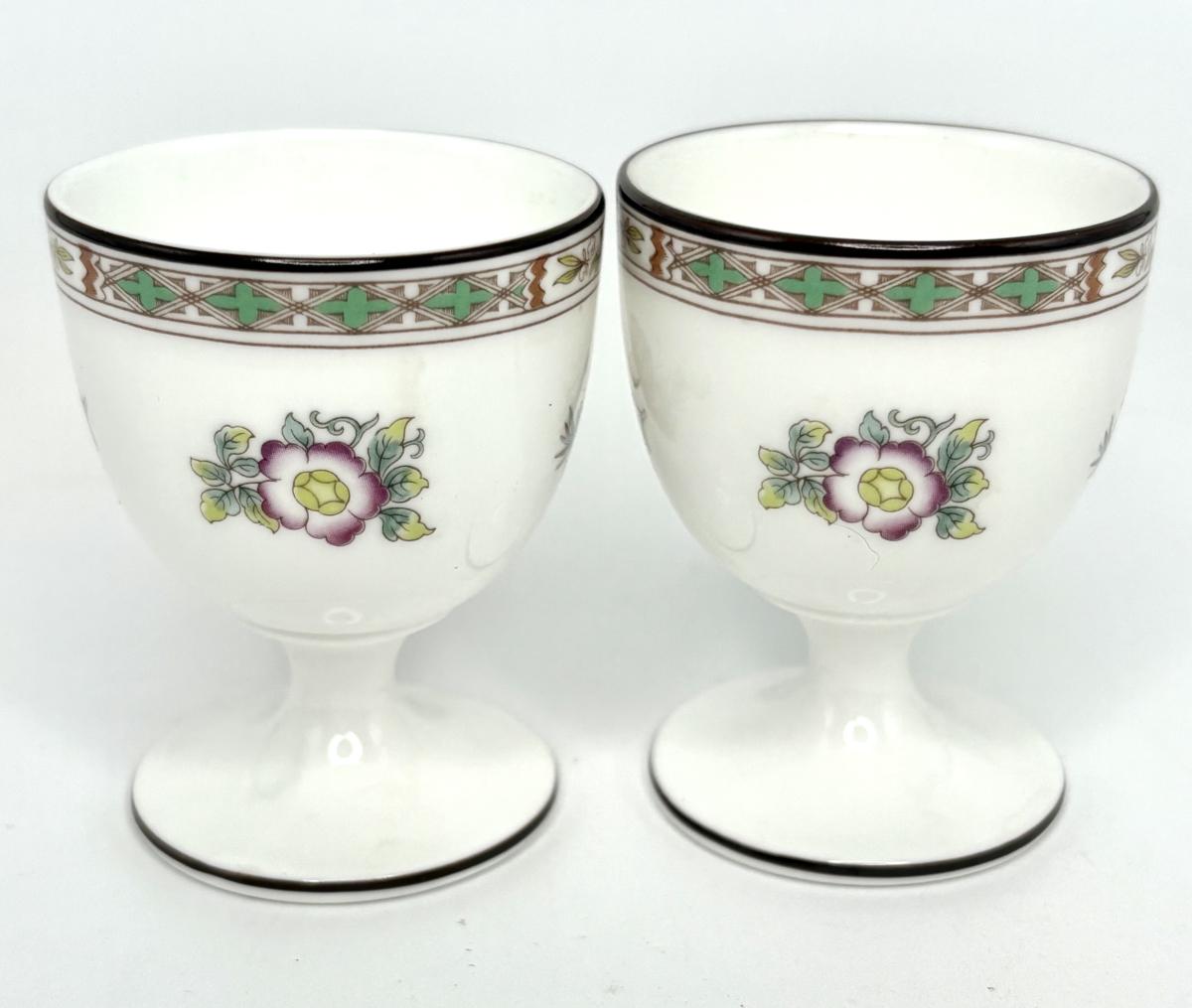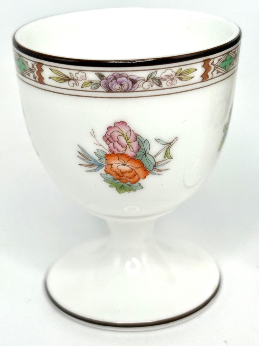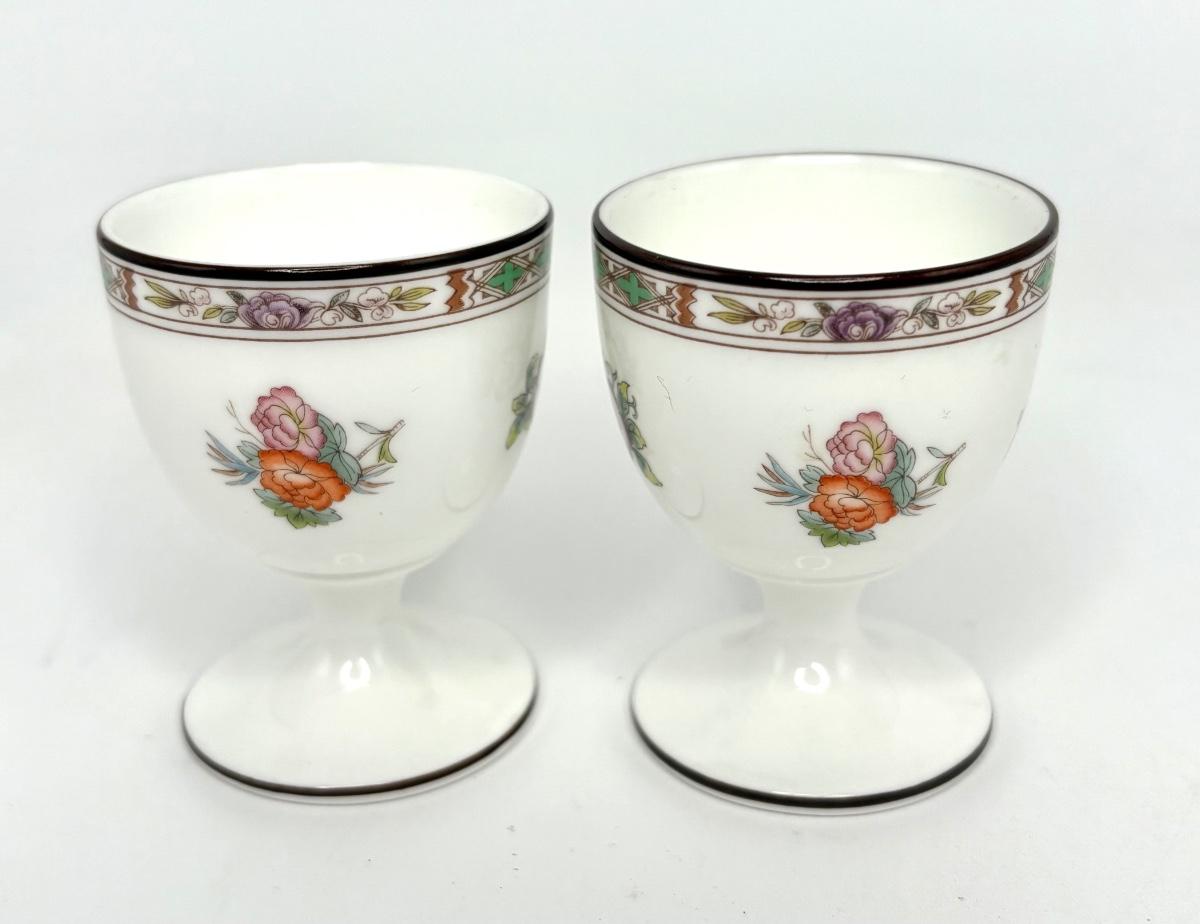 2 Wedgwood Egg Cups + 2 Vintage Cloissone Enamel Eggs