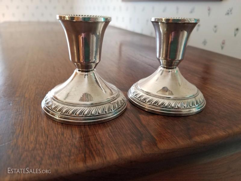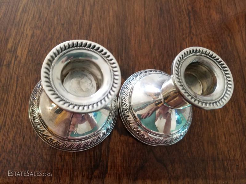 2 Weighted Sterling Candle Holders Dughin Creation Manufacturer