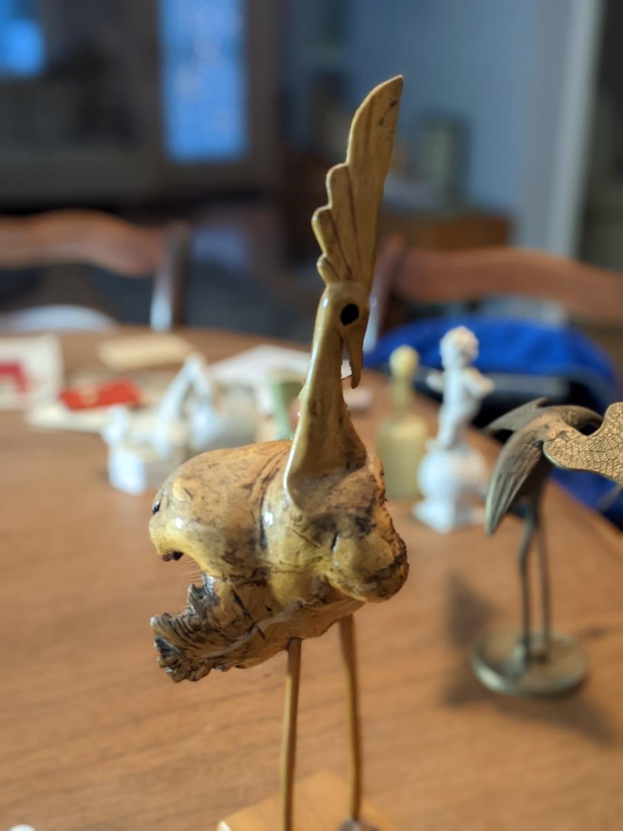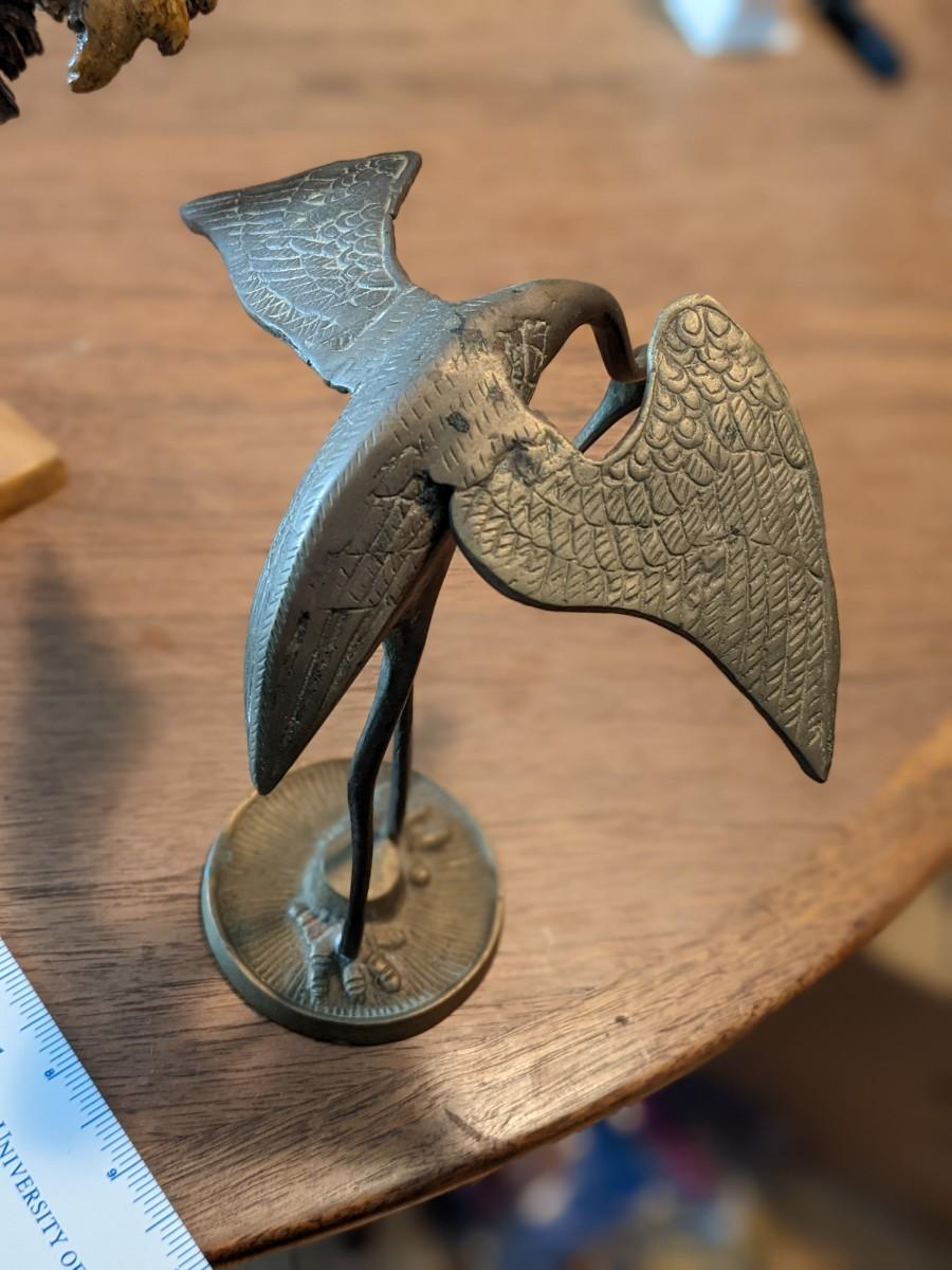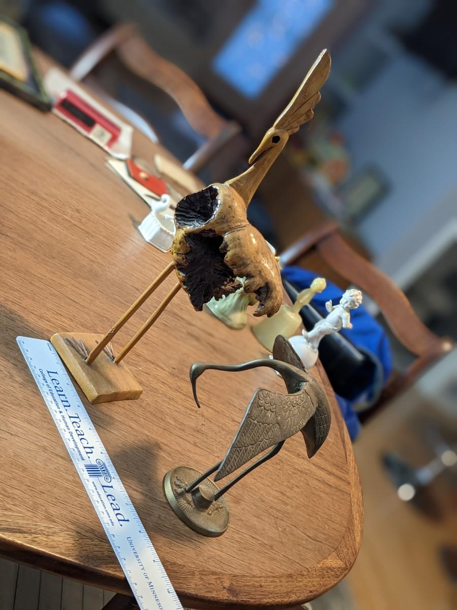 2 Well Made Hand Crafted Bur Oak and Brass Bird Figurines