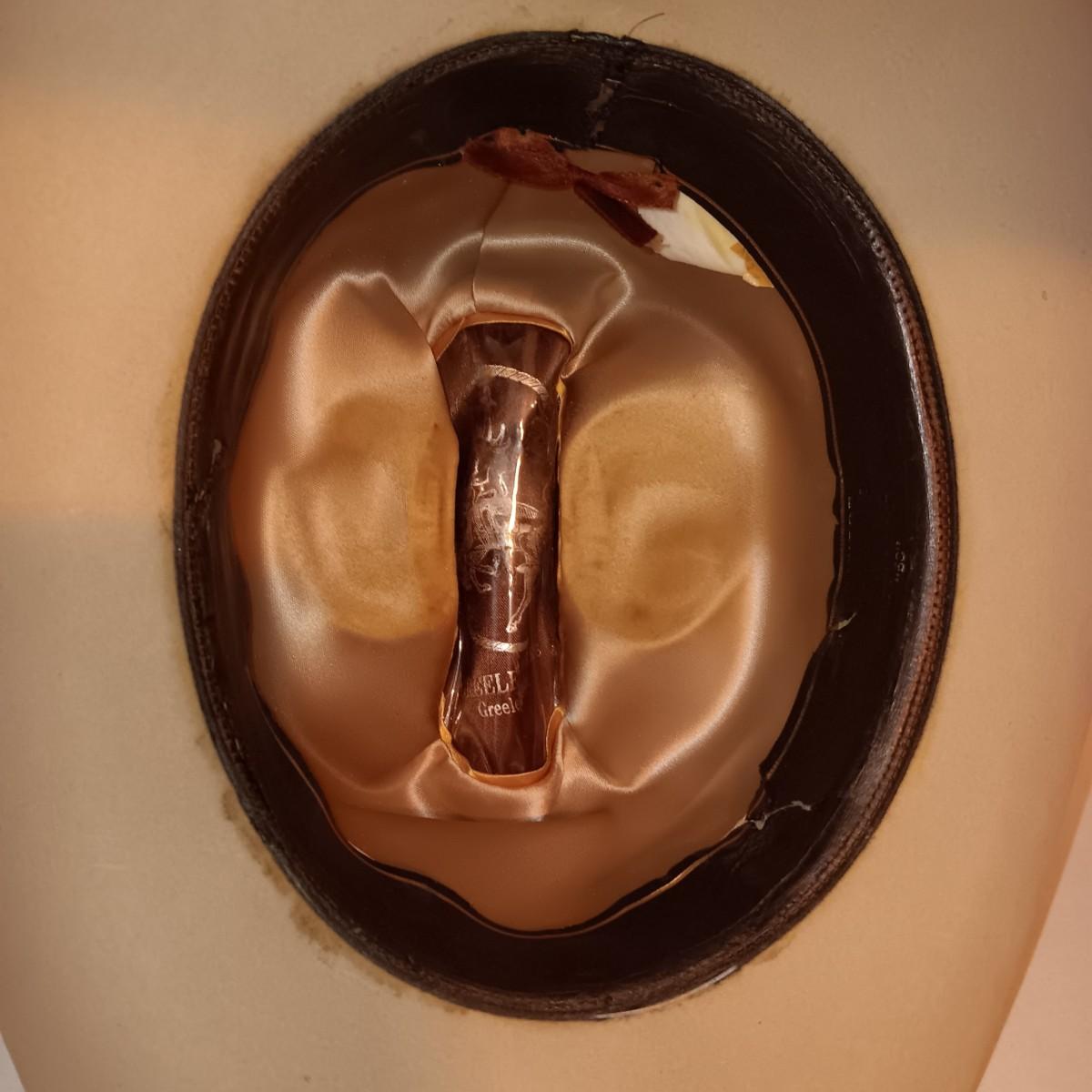 THE FELT HAT HAS DRIED GLUE? AROUND THE BAND AREA