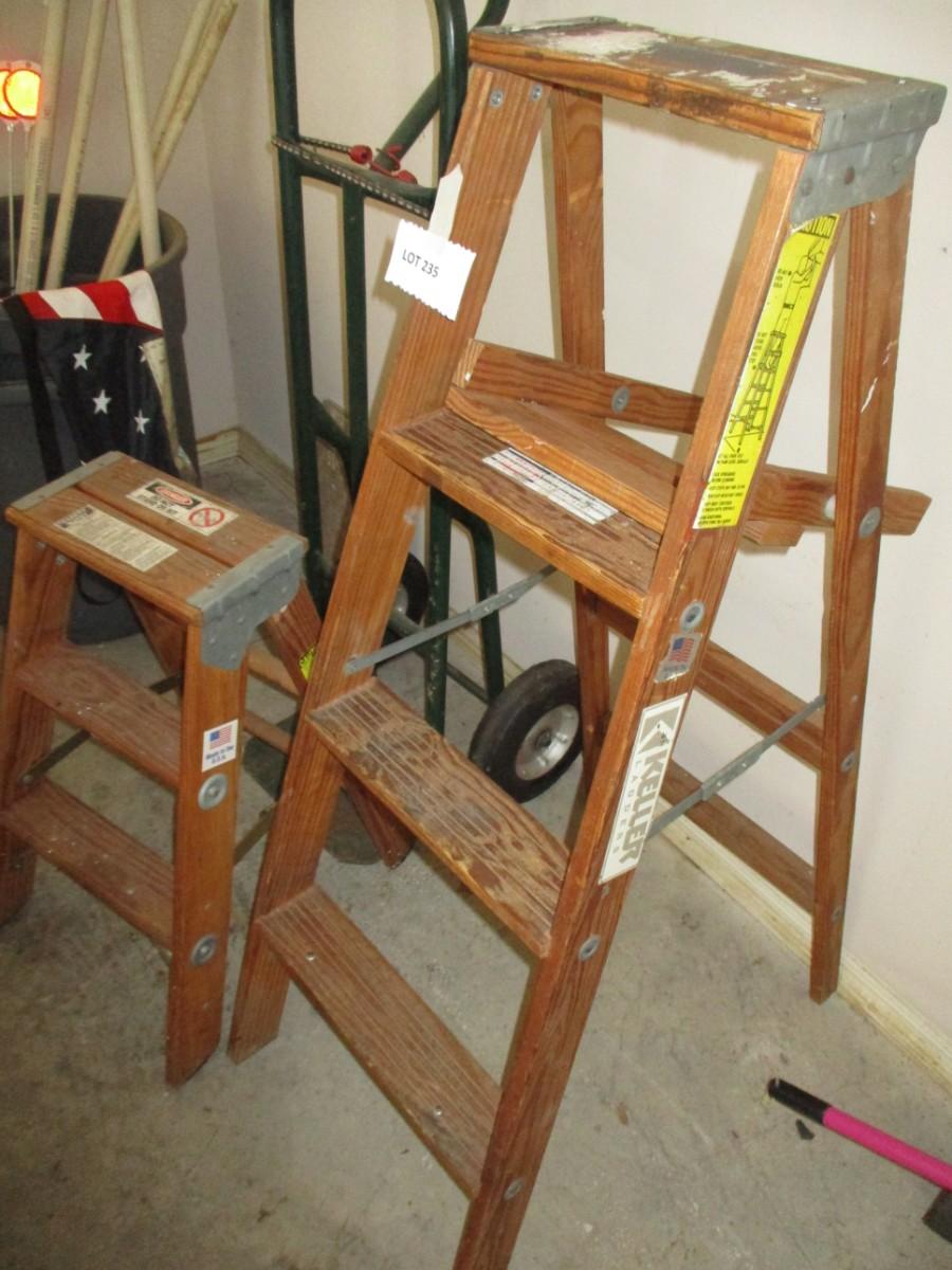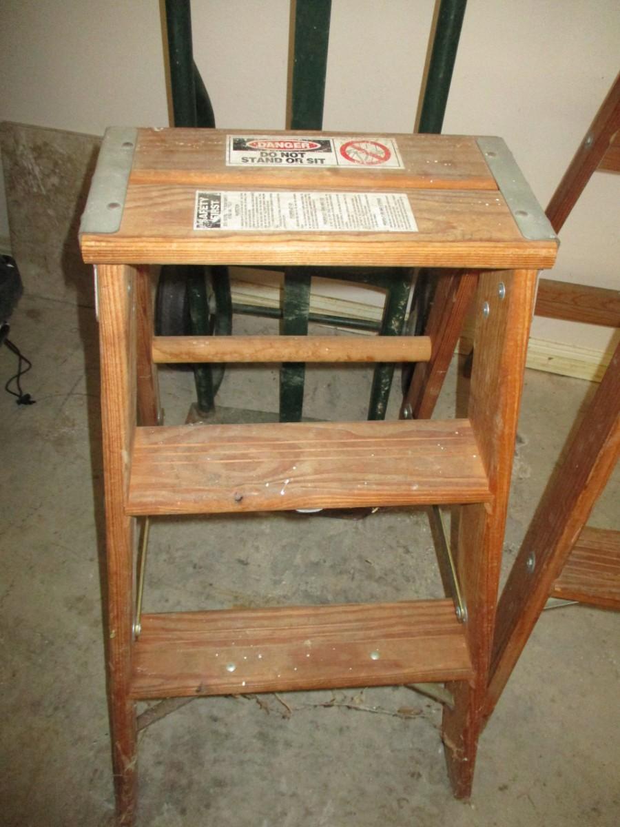 3 step wooden step stool, 4 step wooden ladder good condition