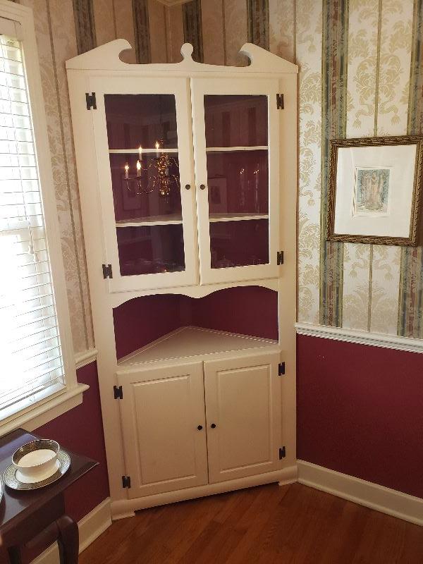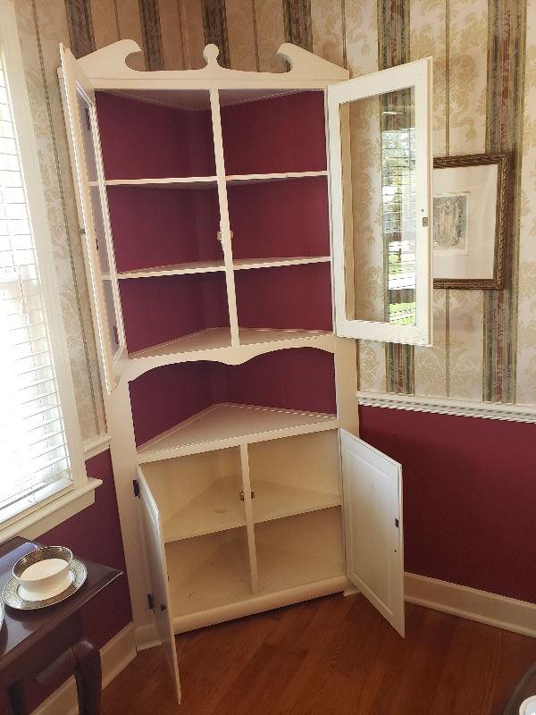 2 White Corner Cabinets