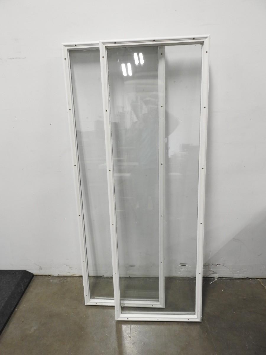 2 White Glass Window Inserts, 21"x 2.5" x 66", Wood Frame, Good Condition