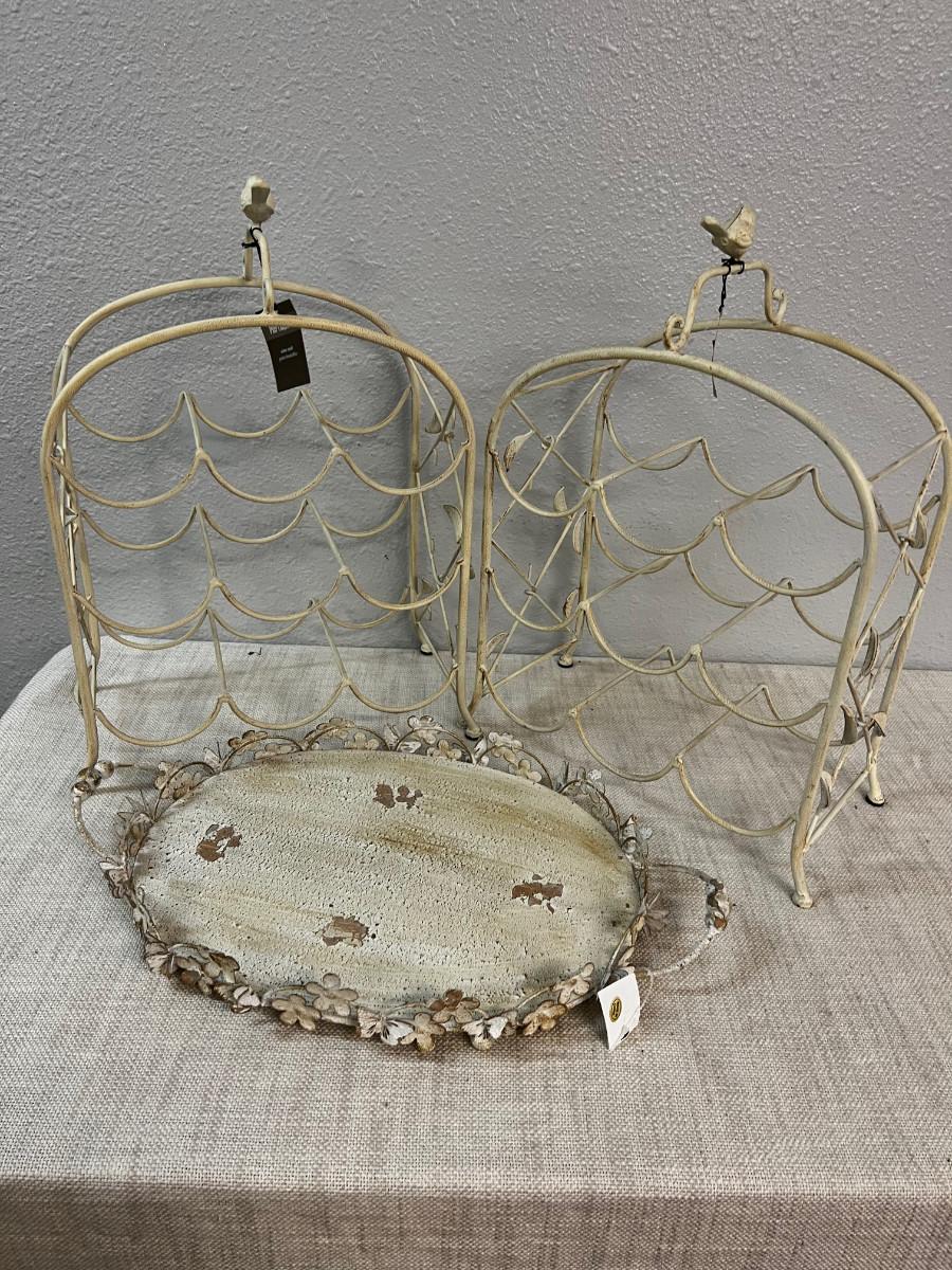 2 Wine METAL Racks and a serving Tray CREAM Color New