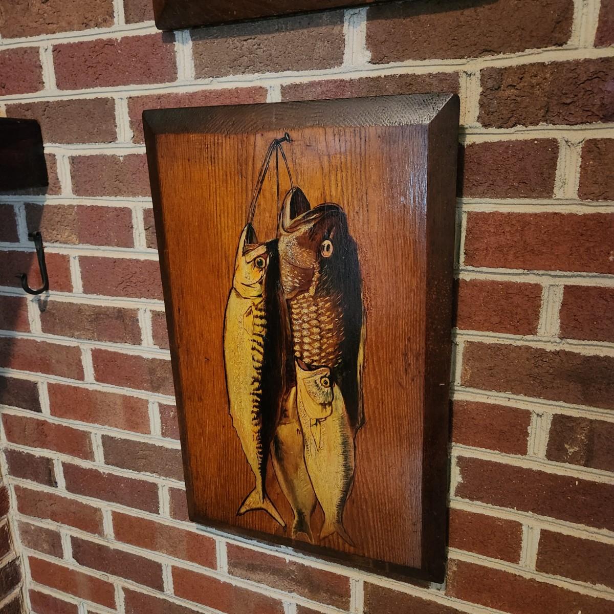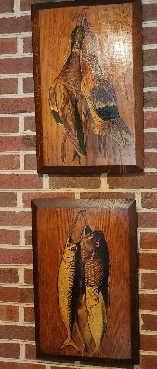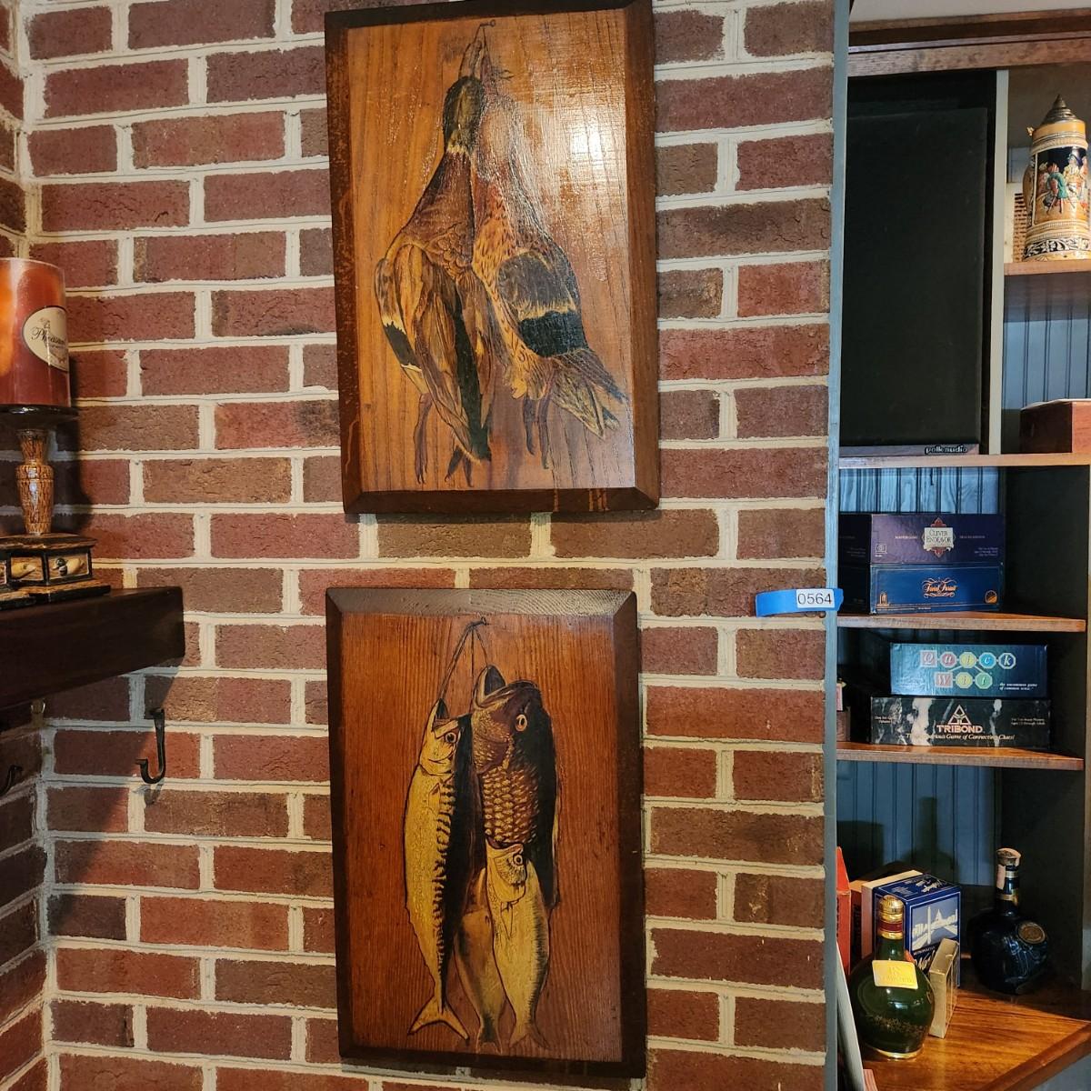 2 Wood Wall Art Pheasant & Fish 15x22