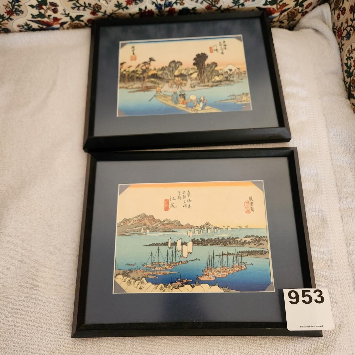 2 Woodblock Prints Tokaido Stations Hiroshige Ando