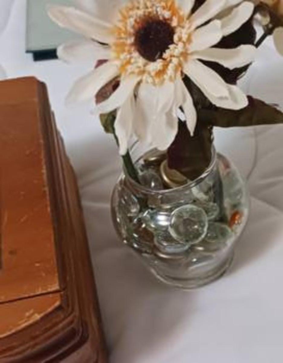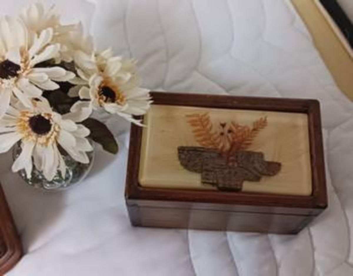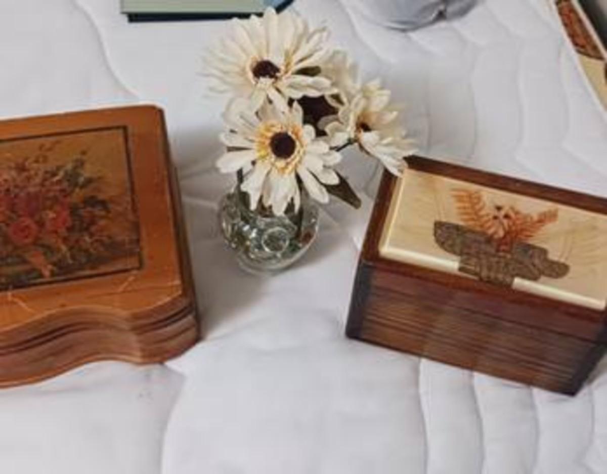 2 WOODEN BOXES AND SOME FAUX DAISIES