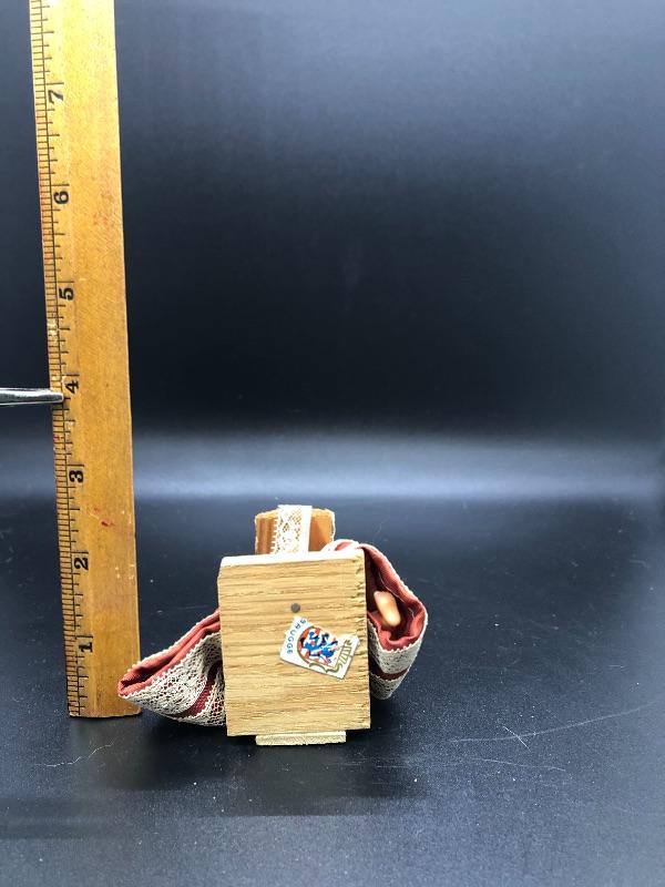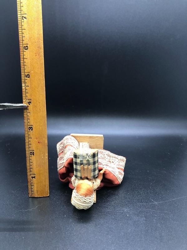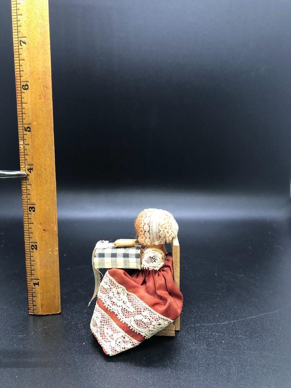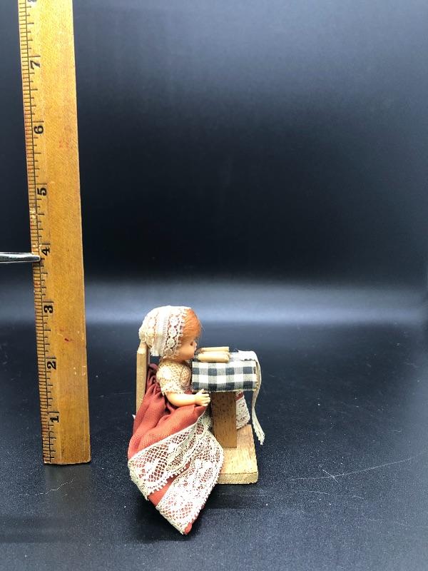Vintage miniature girl at table figurine. 3" size. Does have a maker sticker on the bottom. Missing an arm. #499a53
