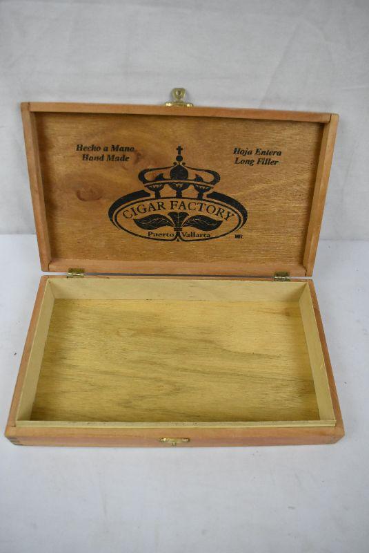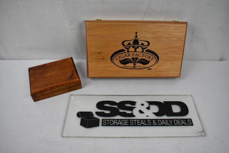 2 Wooden Hinged Boxes. Nautica Watch Box, Cigar Factory Cigar Box