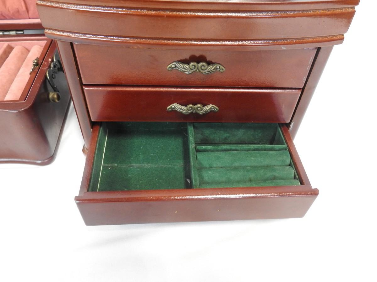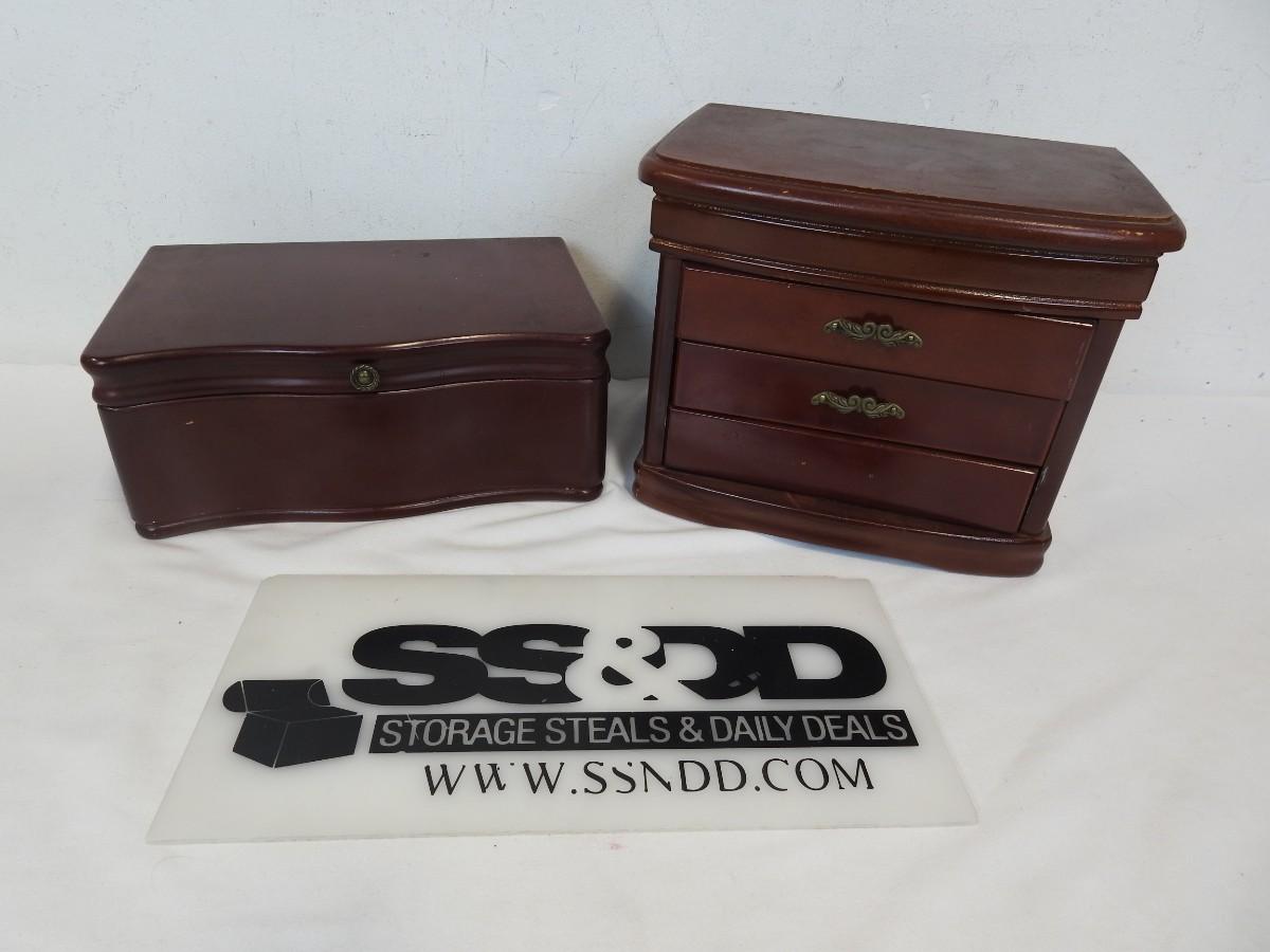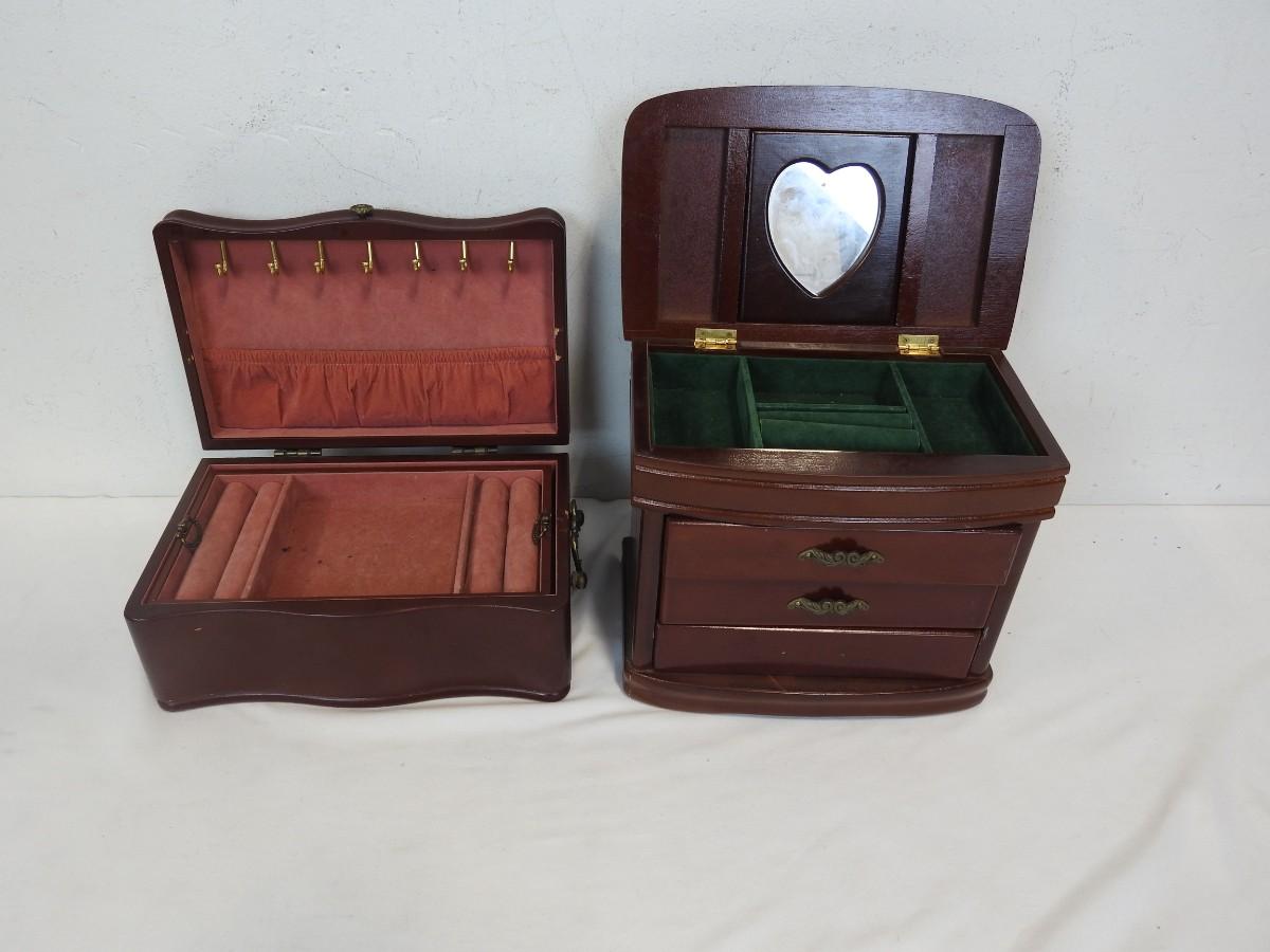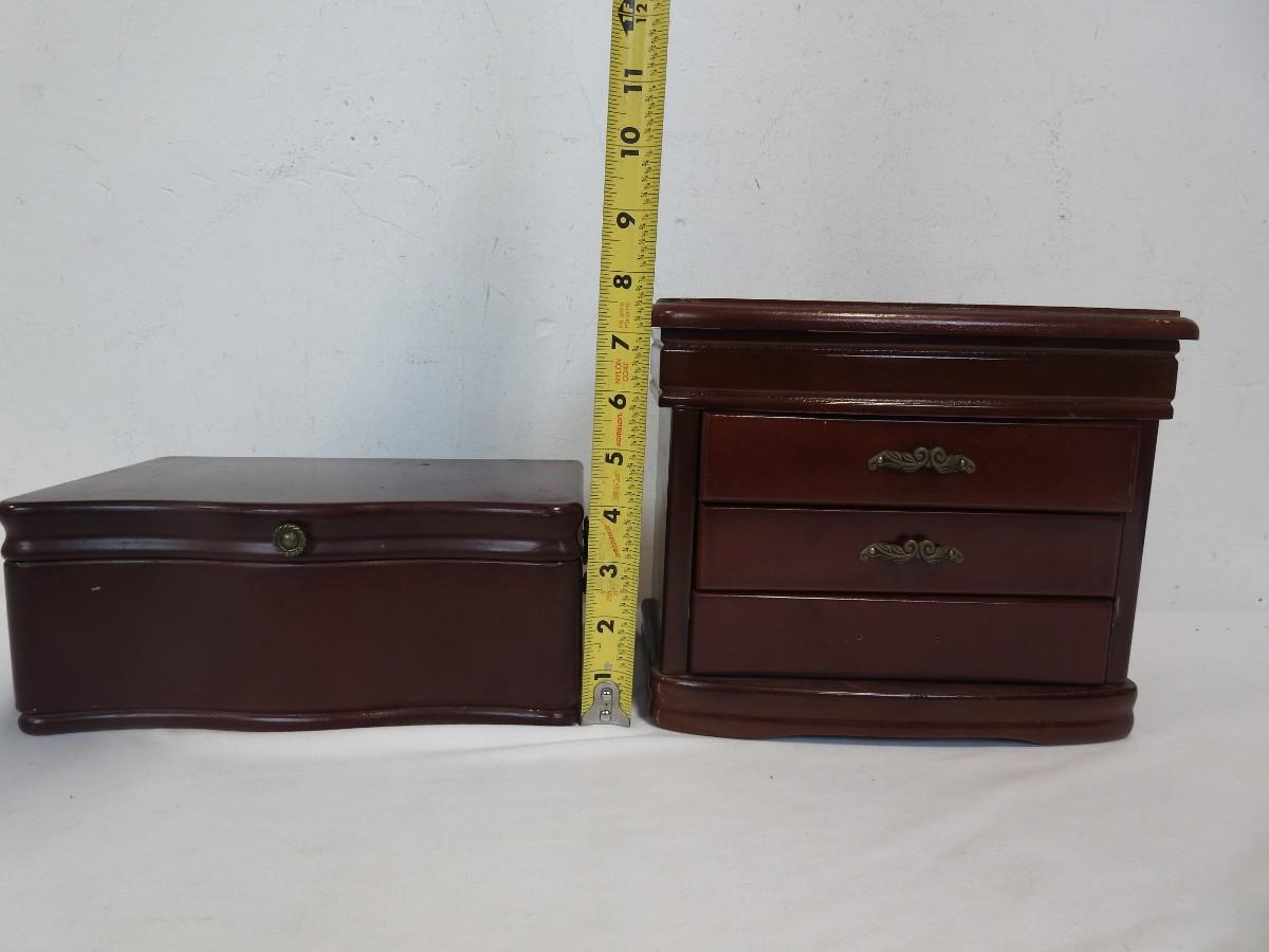 2 Wooden Jewelry Boxes, Cherry/Red/Mahogany Color with Lining