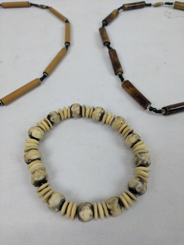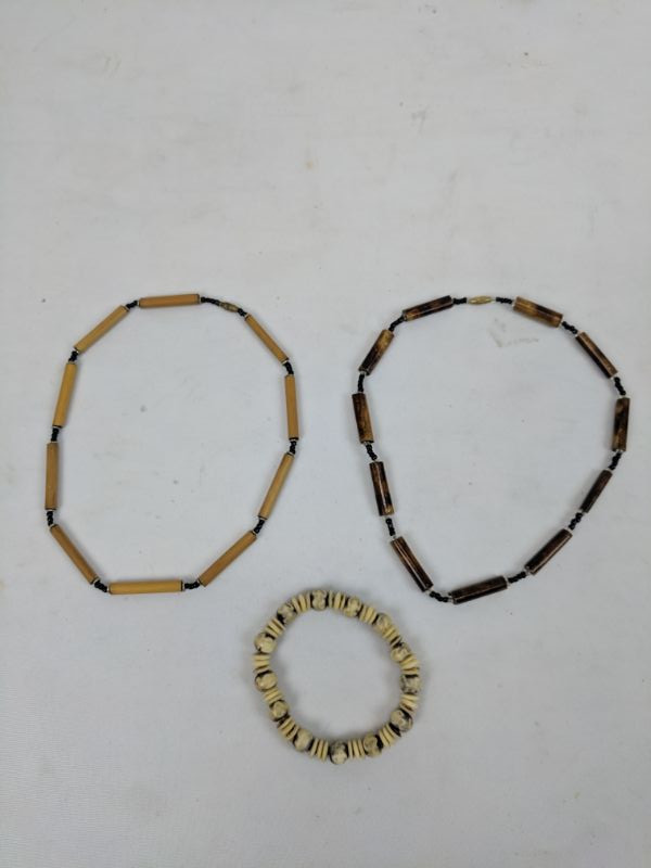 2 Wooden Necklaces & Shell Bracelet