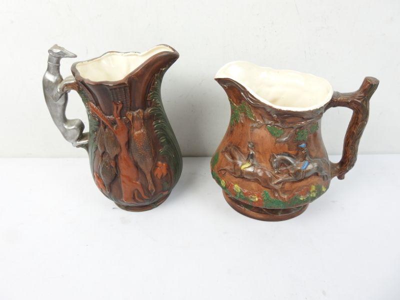 2 Woodland, Horses, Greyhounds Themed Pitchers, Ceramic