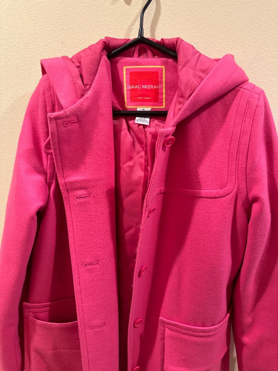 Men’s Dayton Hudson coat, size 46R in women’s Isaac Mizrahi, beautiful pink wool coat size, medium