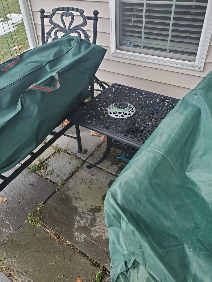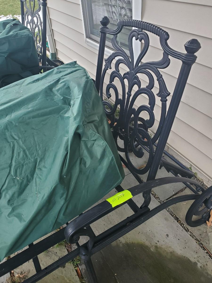 2 Wrought iron chaise with cushions and matching table. Very nice set