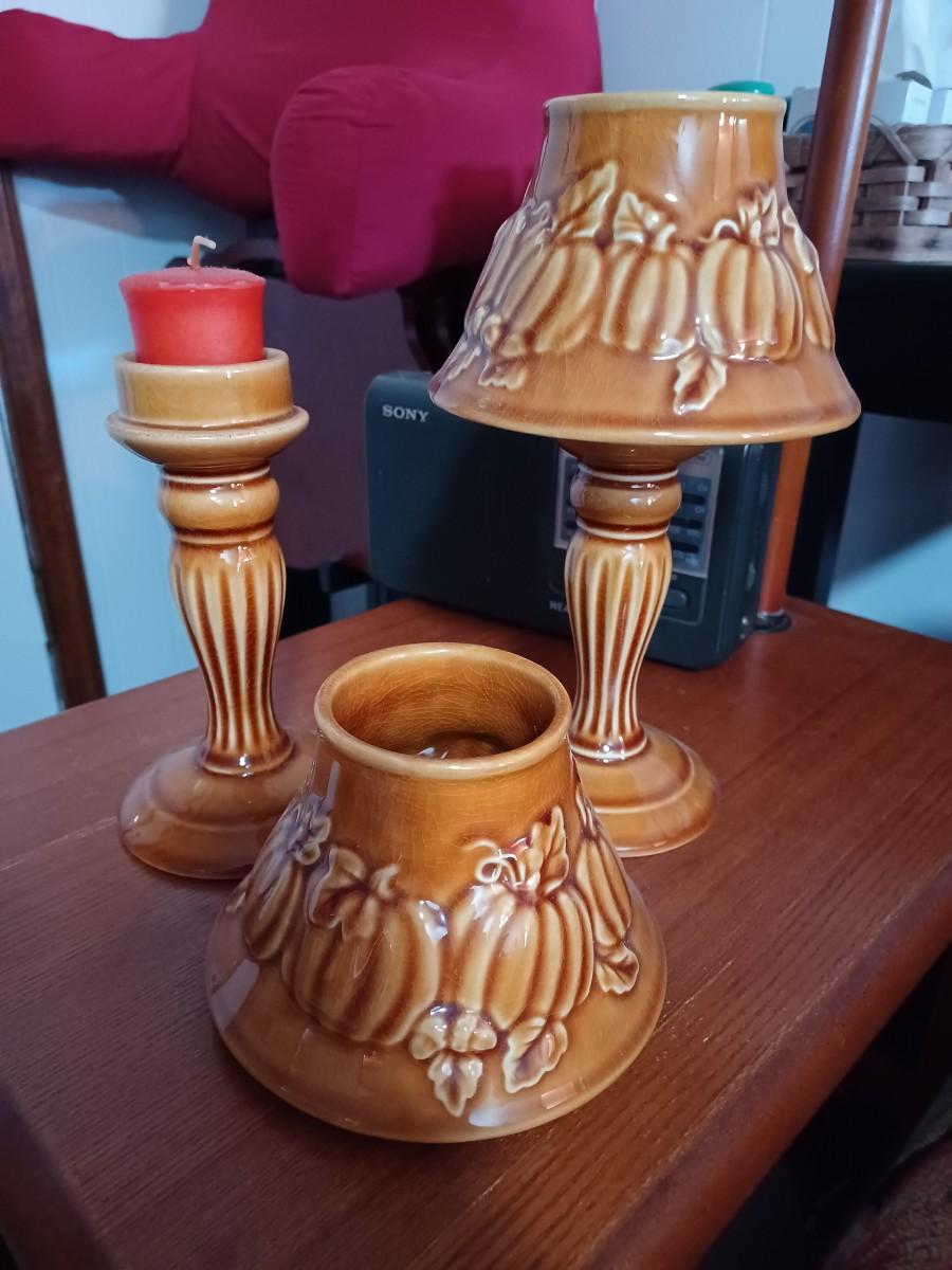 2 Yankee Candle Amber Pumpkin Porcelain Tealight\ Votive Holder & Shade