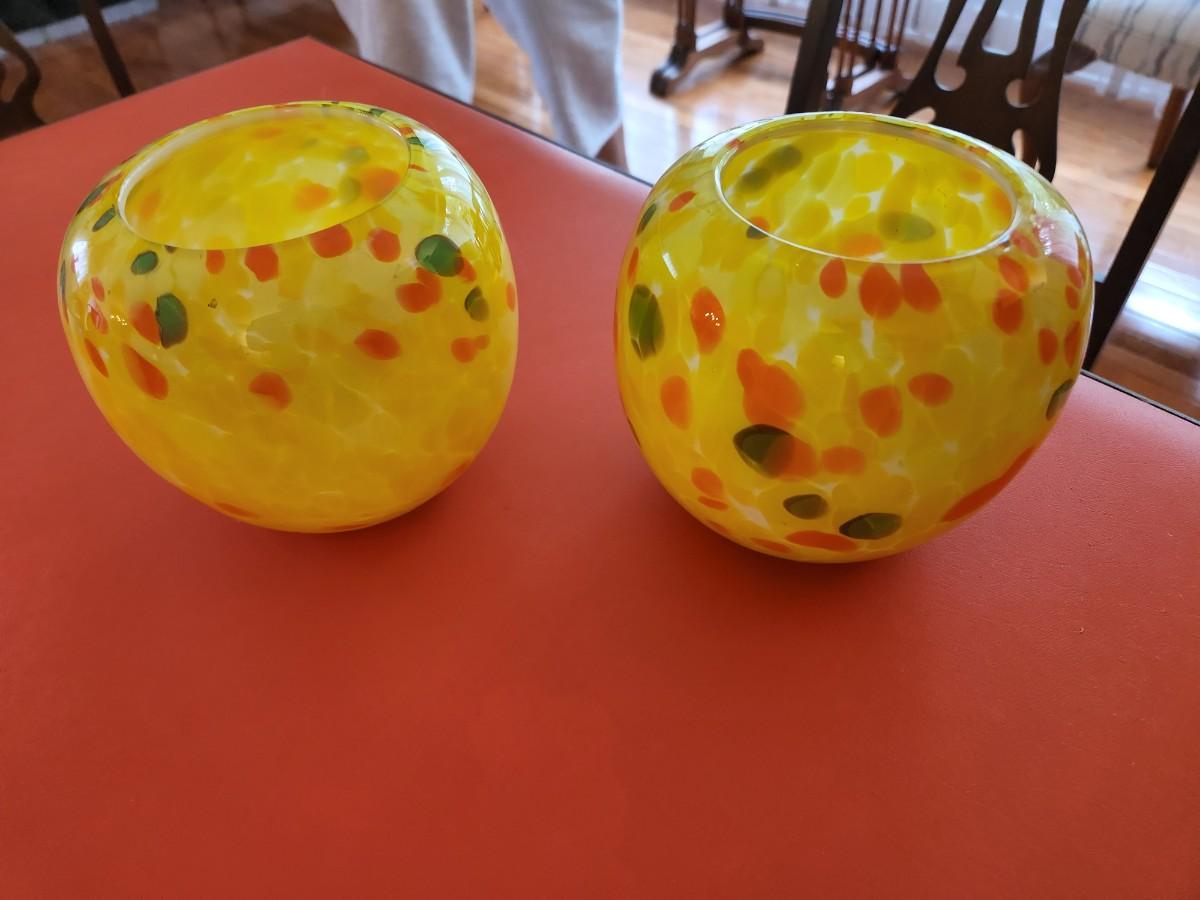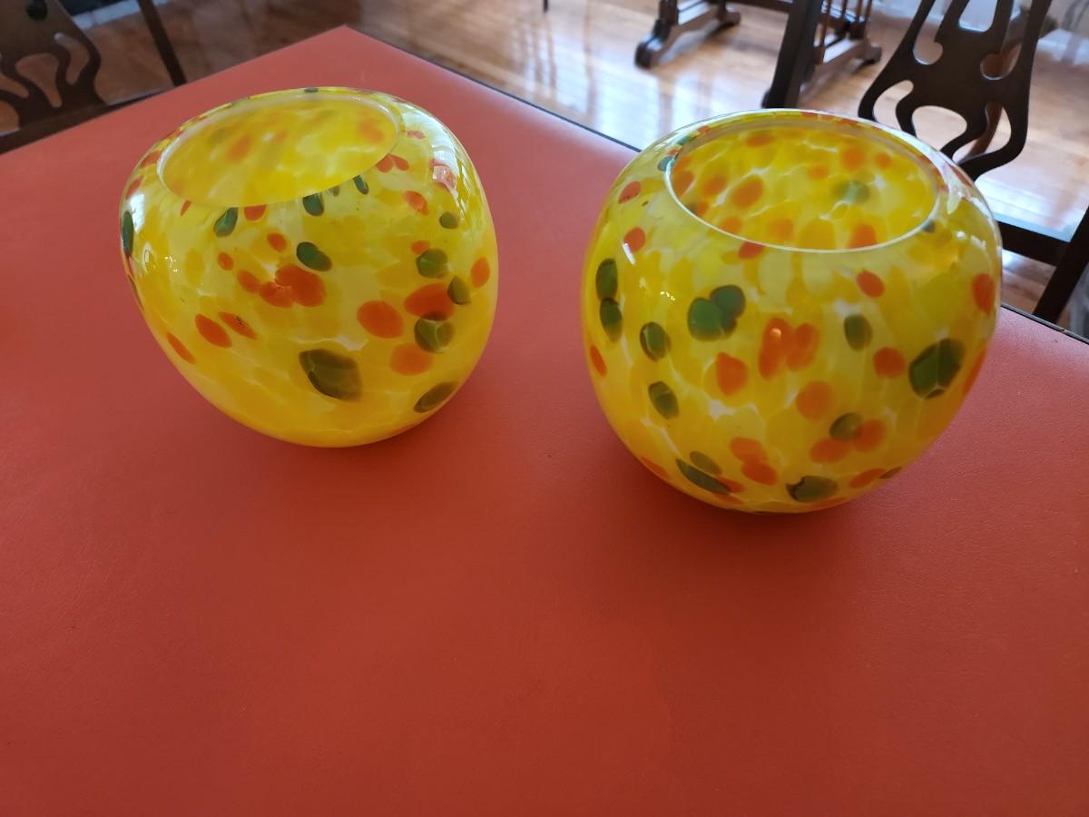 2 Yellow Art Glass Bowls