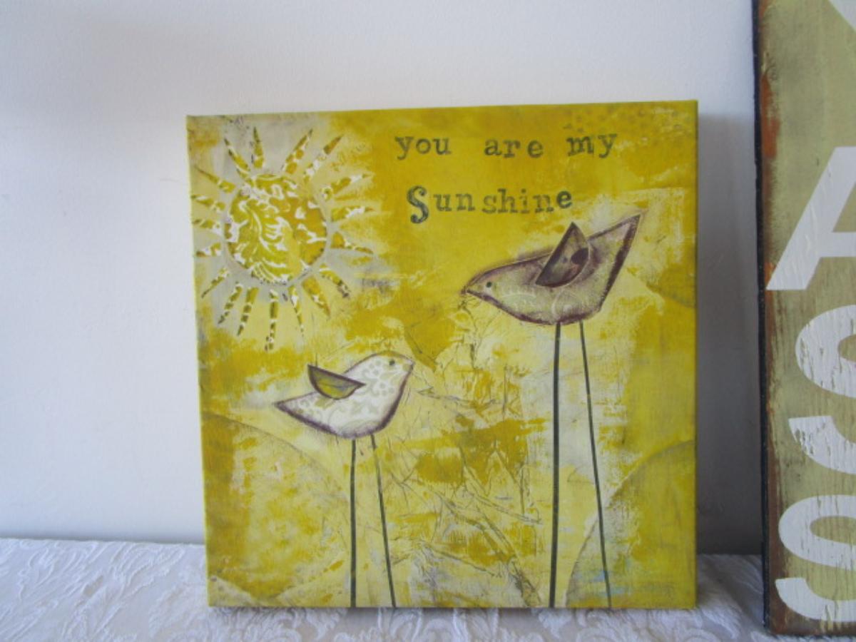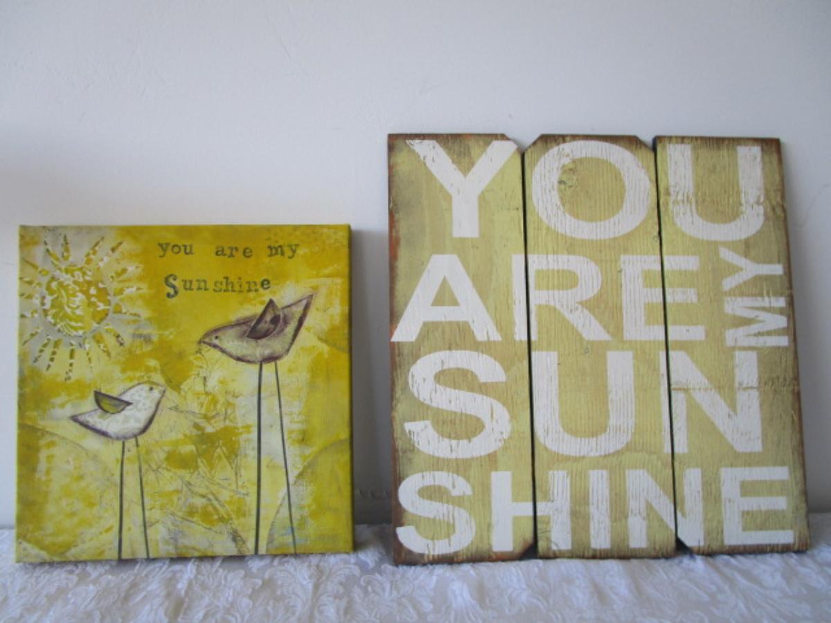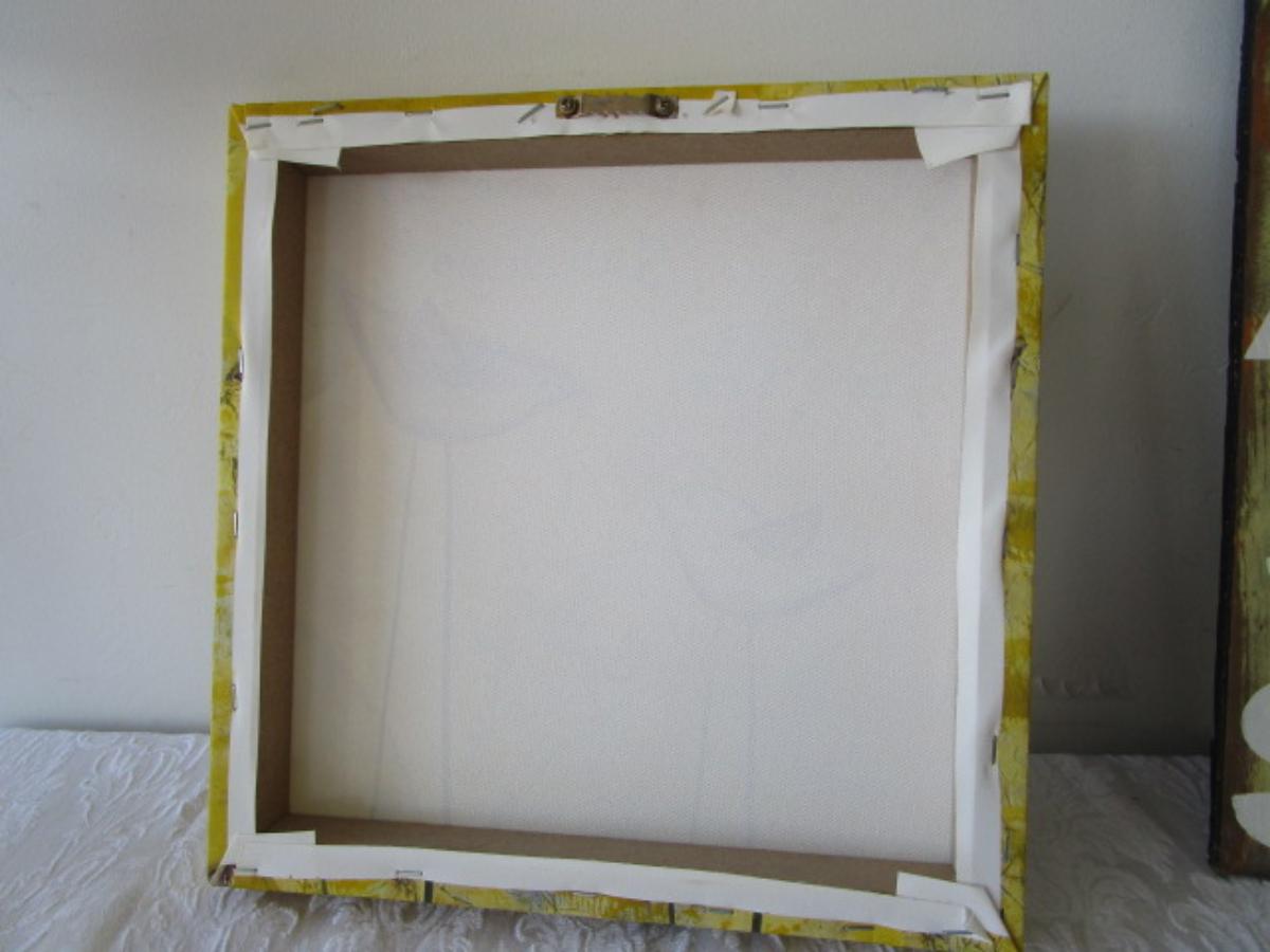 1 is picture on canvas 12" square, one is a wood wall hanging 15-7/8" tall x 15-1/2" wide
