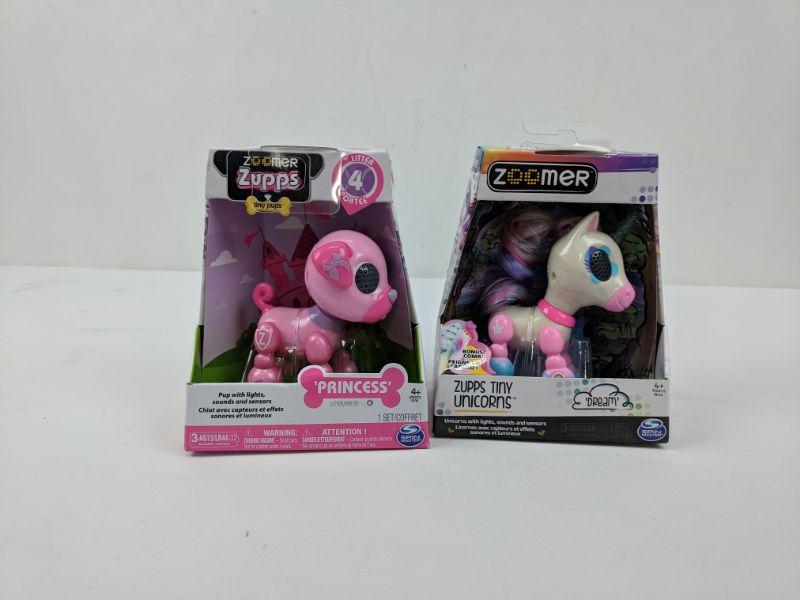 2 Zoomers, Zoomer Zupps Tiny Pups "Princess" & Tiny Unicorns "Dream" - New