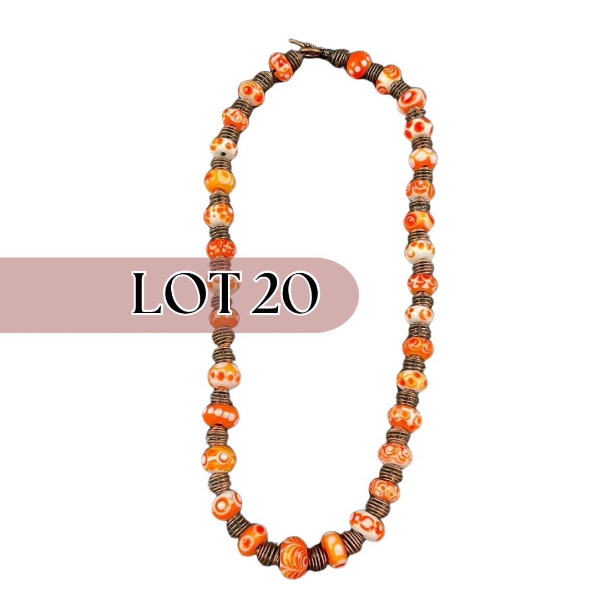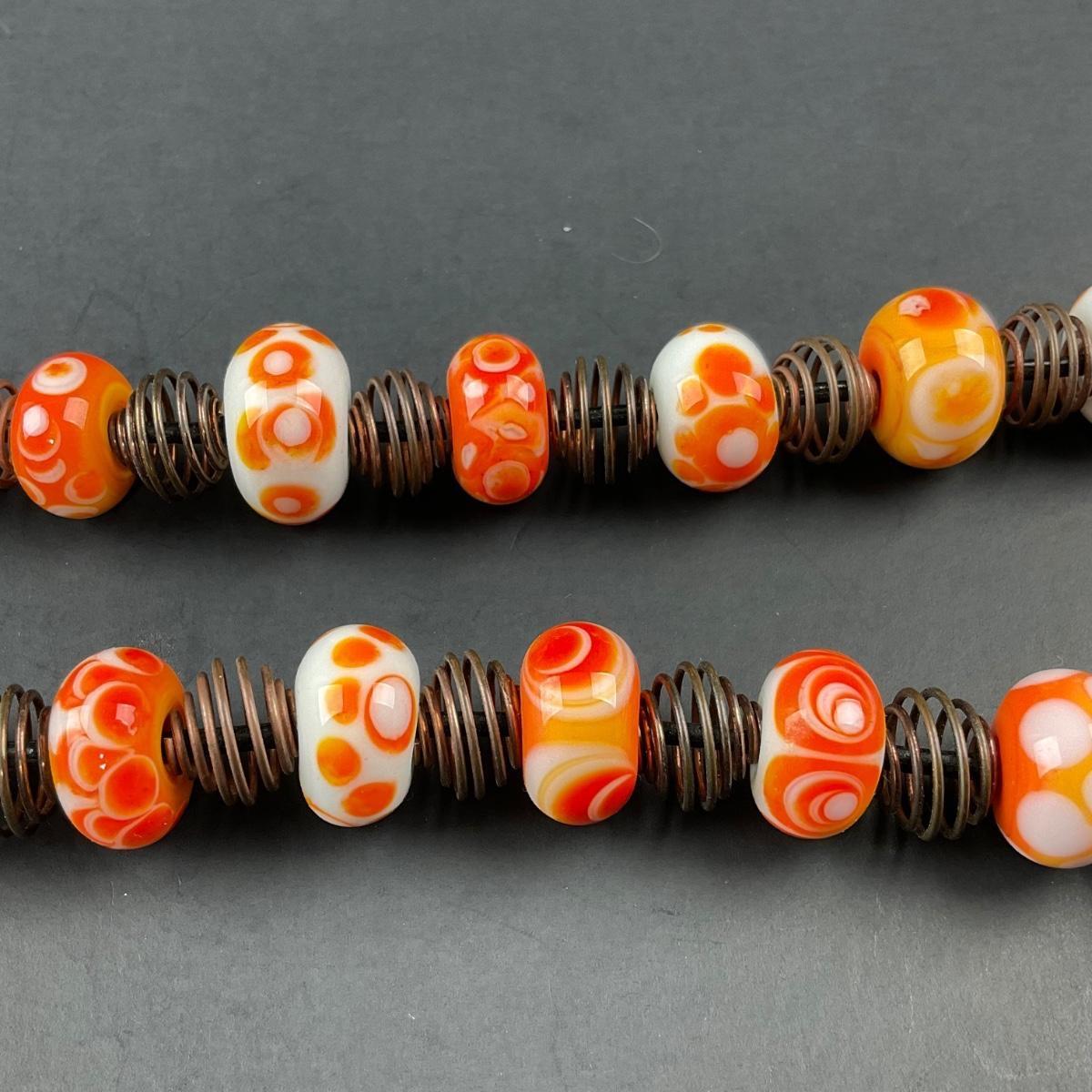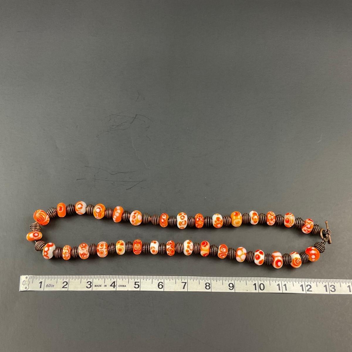 -20- ARTISAN | Orange, White, Red, Dot Donut Glass Bead & Copper Art Necklace