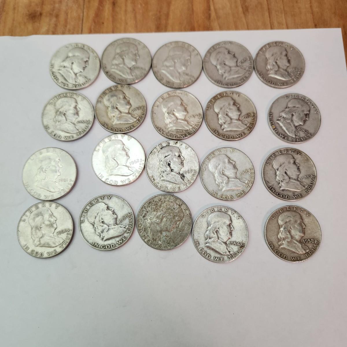 20 Silver Ben Franklin .50 cent Half Dollar Silver Coins Mixed Dates