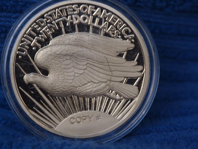 20 Dollar Gold Eagle sealed in plastic Protector Copy Coin Beautiful Gold Coin It is a Copy of a 20 Dollar Gold Coin but it I till gold as the Consigner has stated.