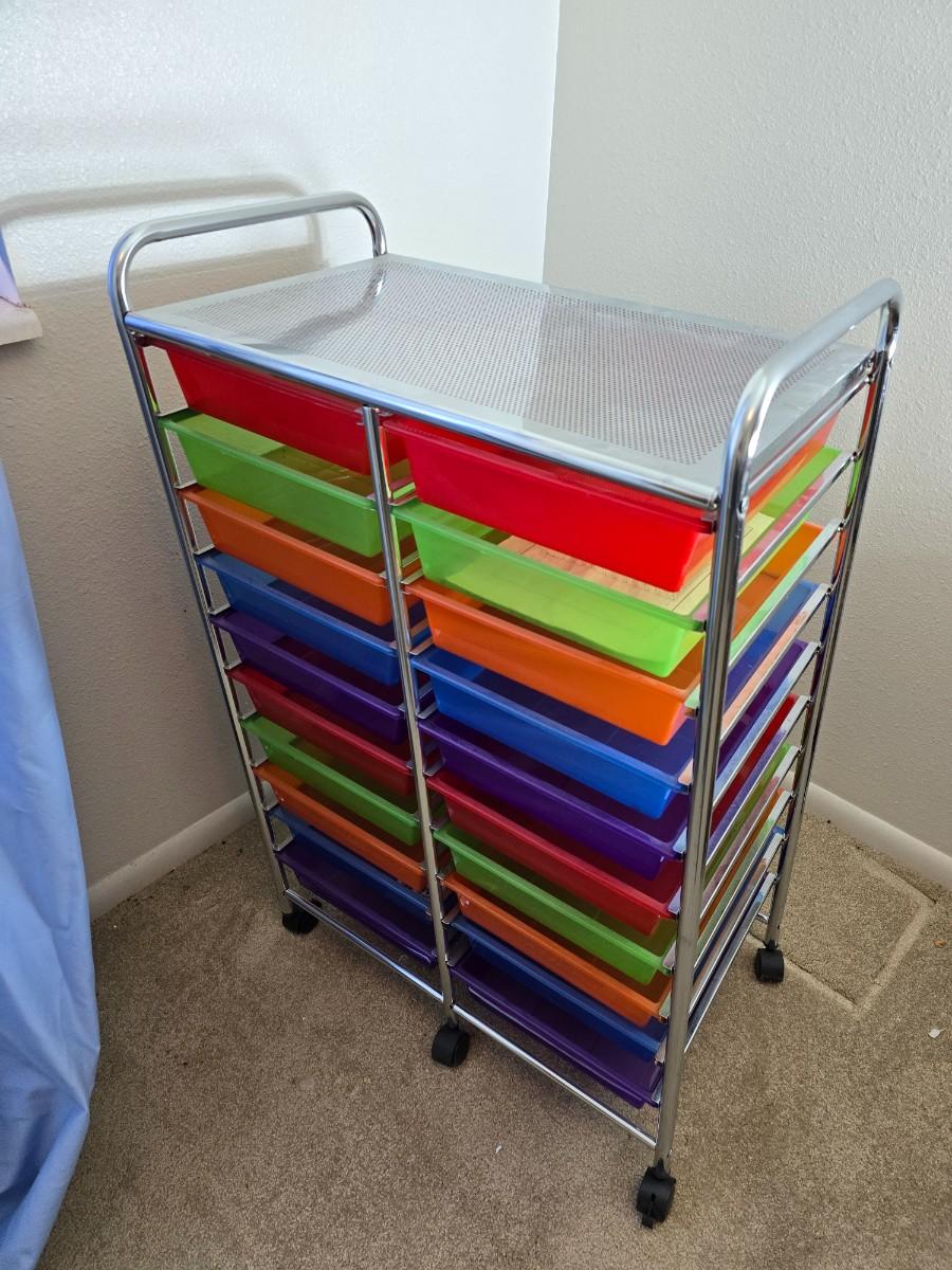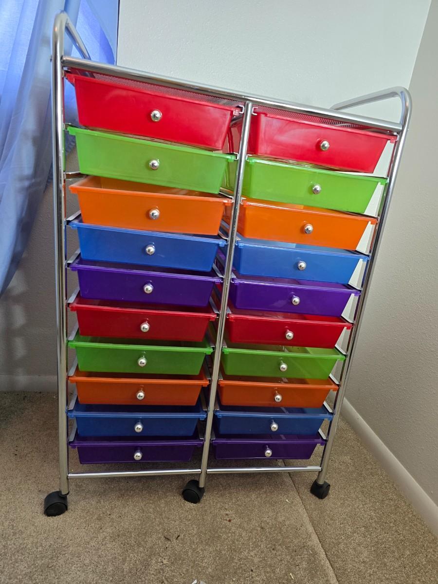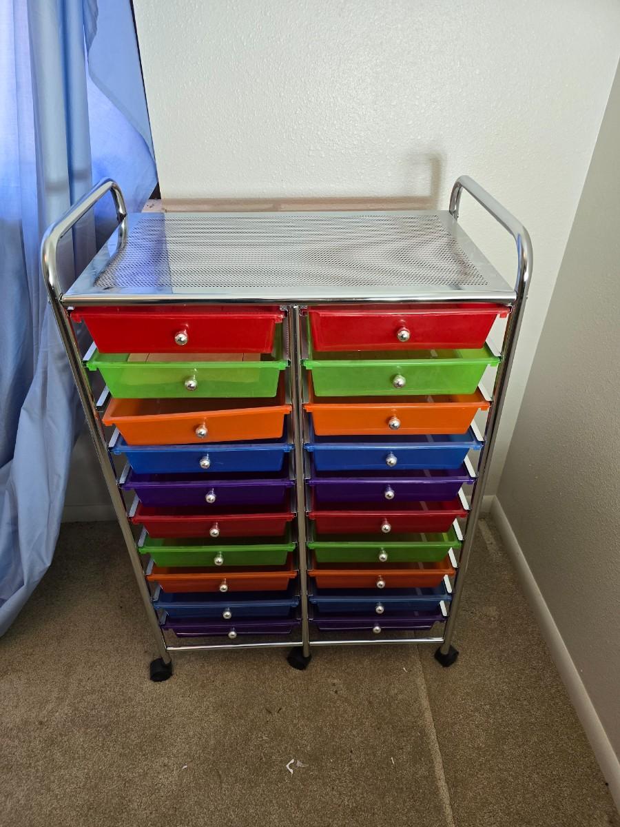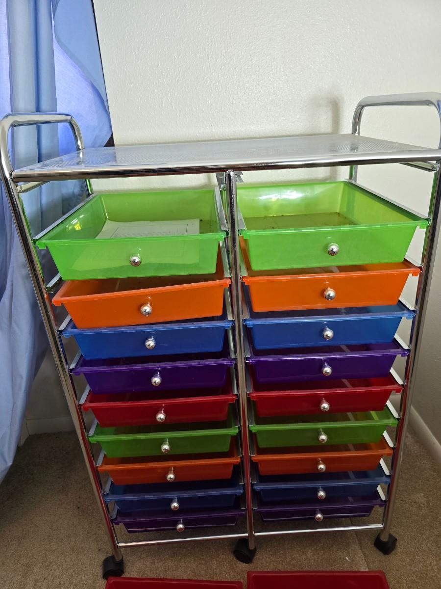 20 Drawer Rolling Storage Cart Bin Tools for Office School Home Studio Organizer with stainless top