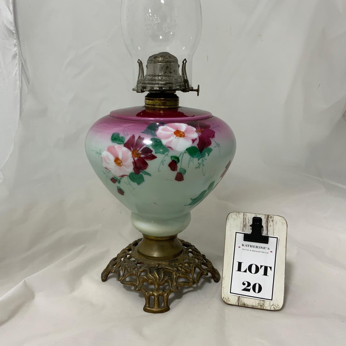 .20. Hand Painted Kerosene Lamp | c. 1890