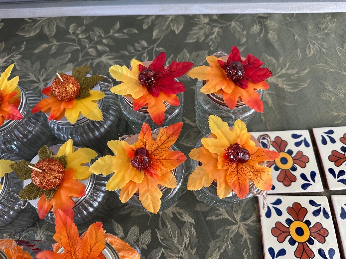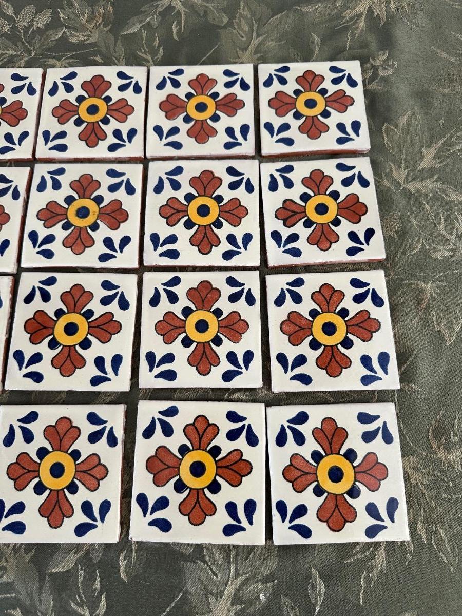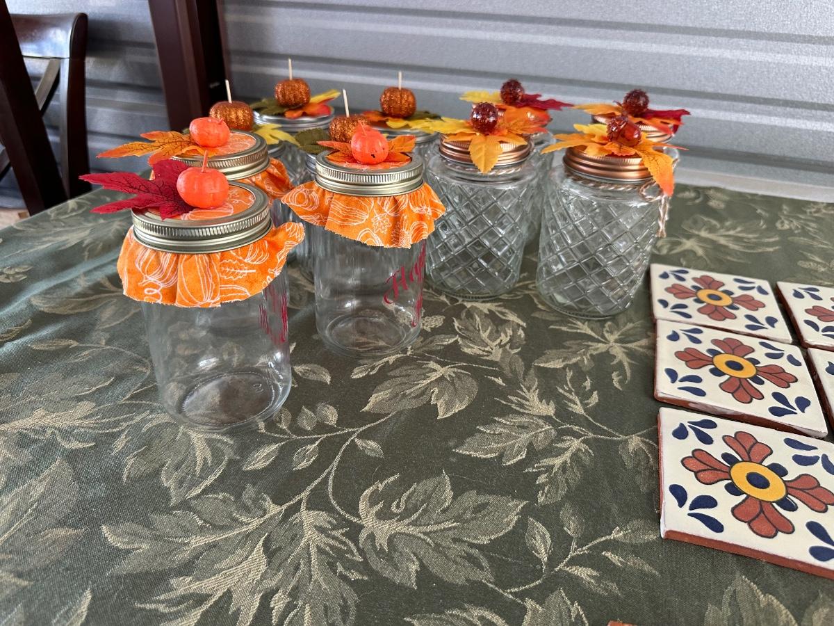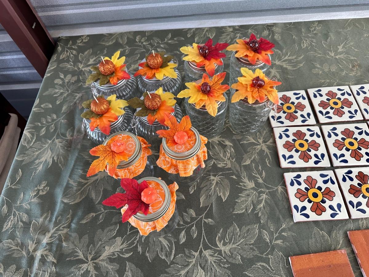 20 HANDMADE TERRACOTTA TILES AND FALL DECORATED JARS