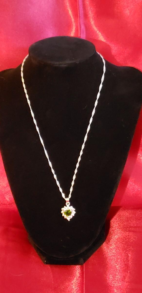 20 in sterling silver necklace and  red tourmaline  and diamond pendant 11 2 g