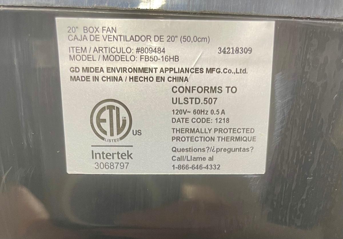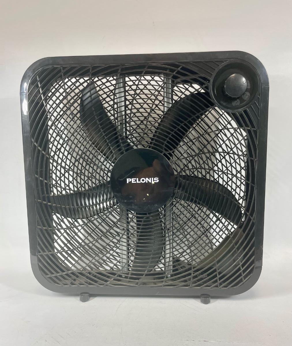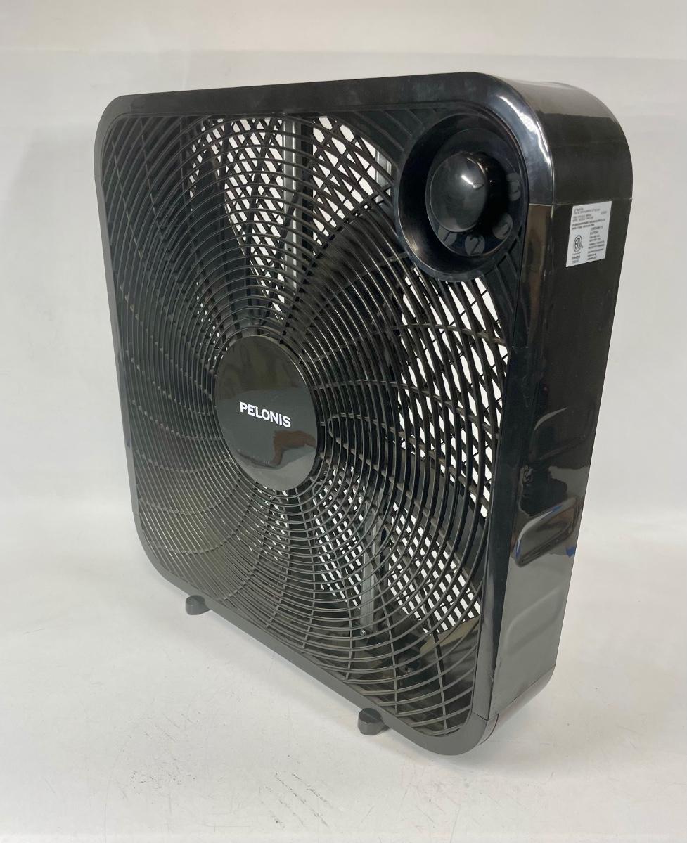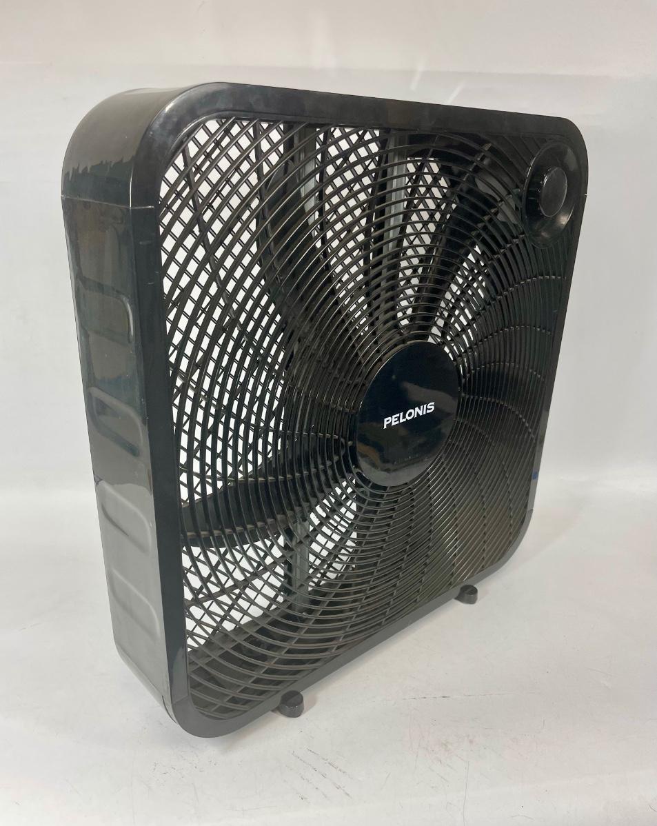 3-speed fan. Made by Pelonis. Tested, runs quietly.