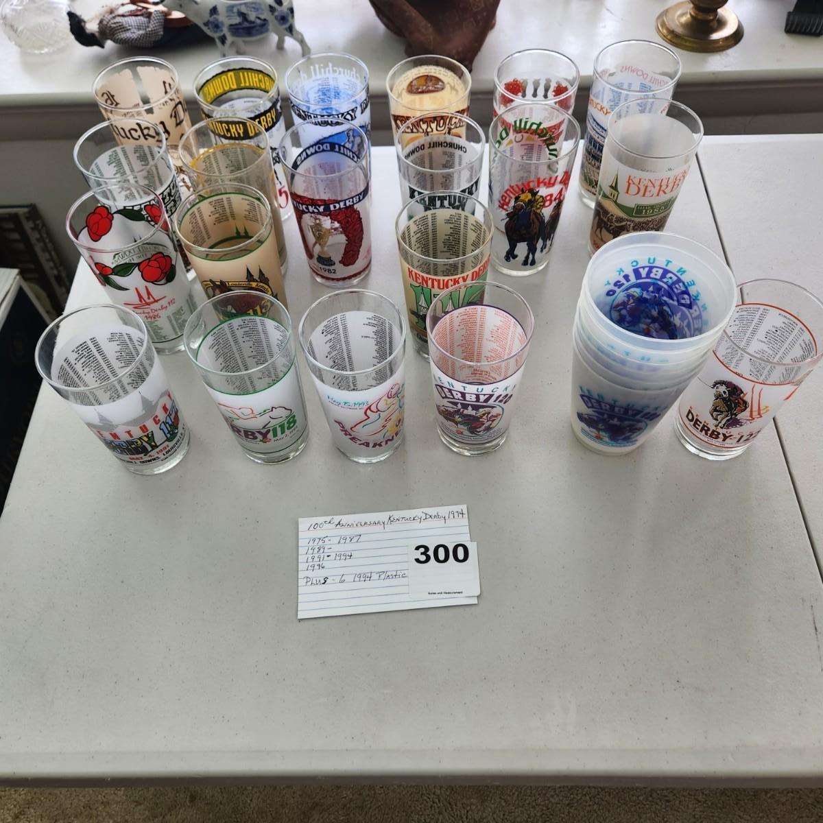 20 Kentucky Derby Glasses 1974-1996 + 6 1994 KD Plastic cups