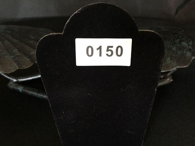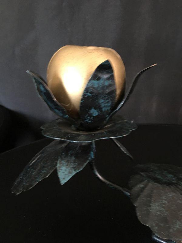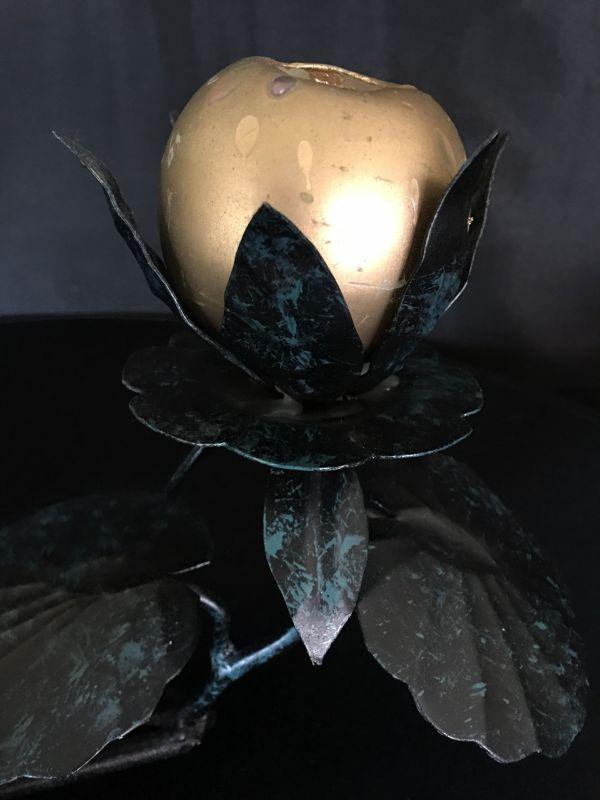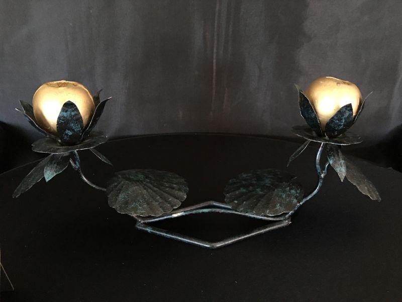 20" Long Metal Candle Holder Water Lilly w 2 used gold ball candles Lot # 150