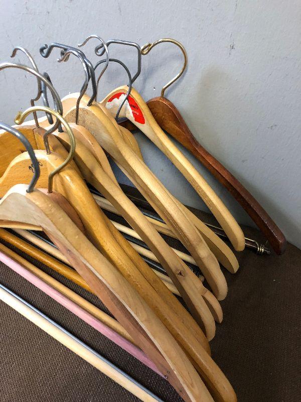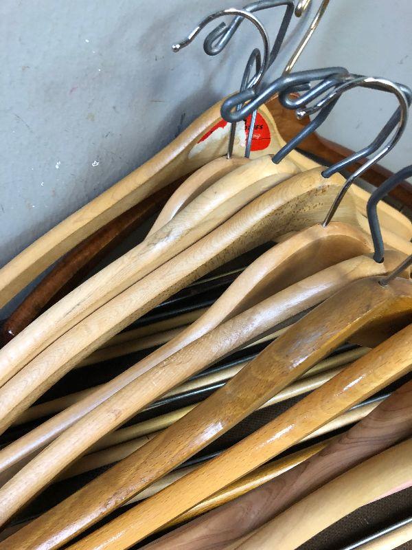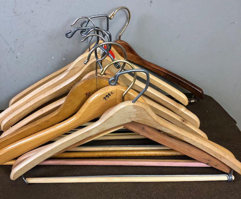 One Dozen. Some are cedar, used. Usable - some pant suit hangers