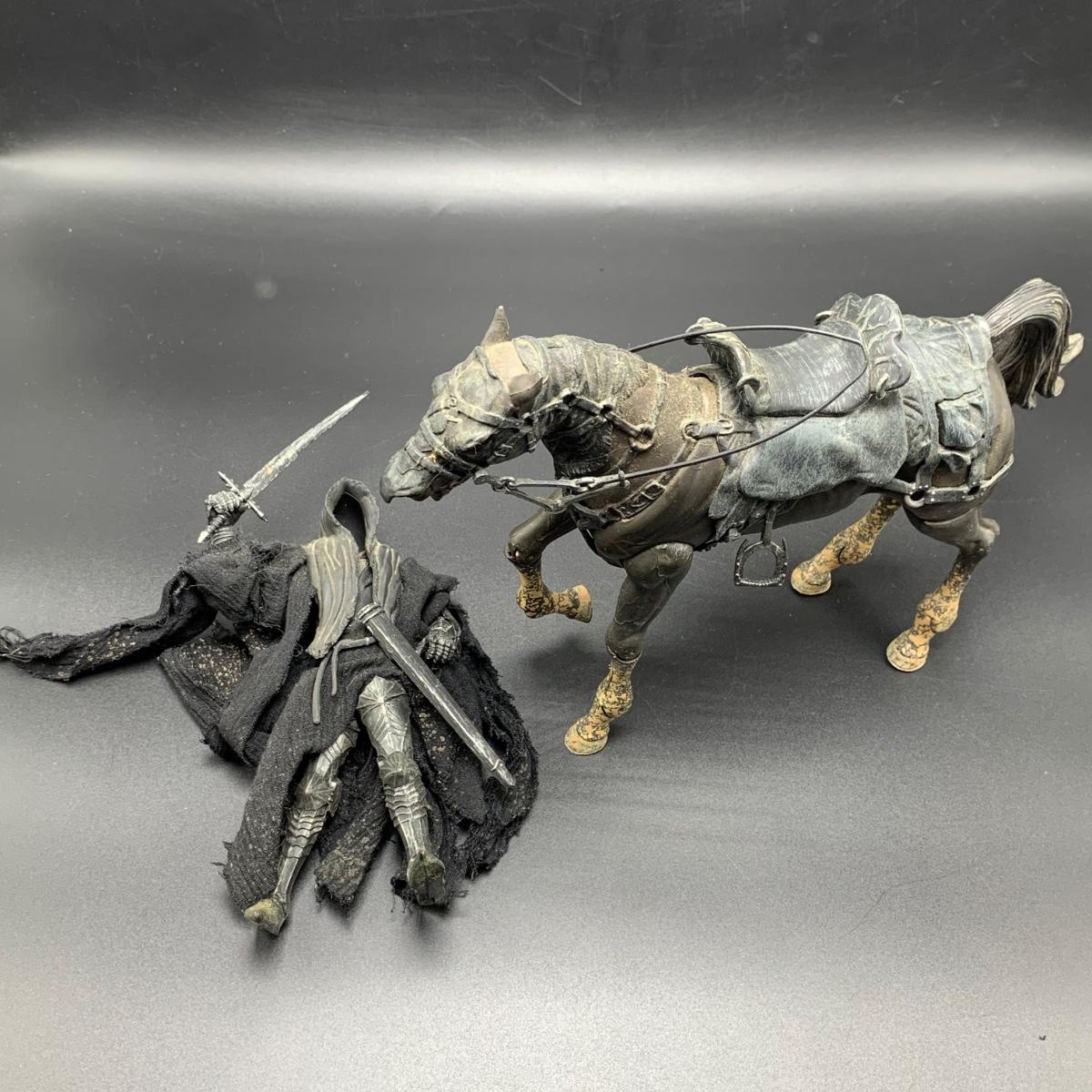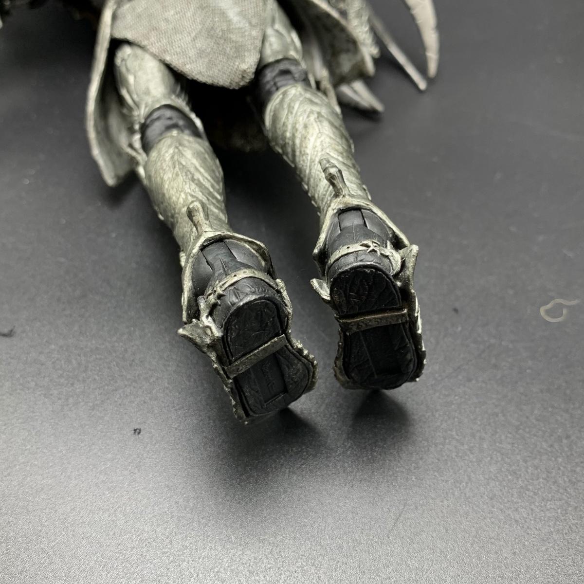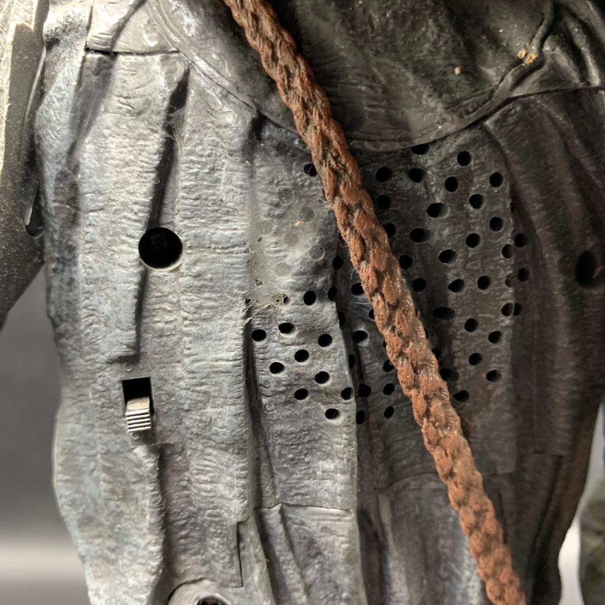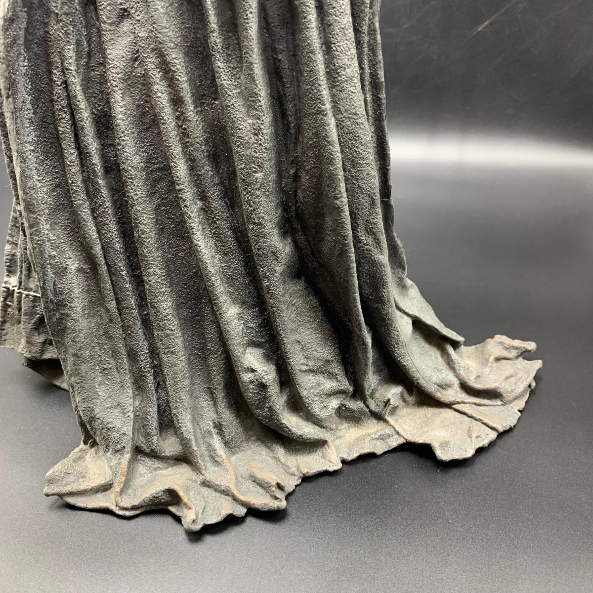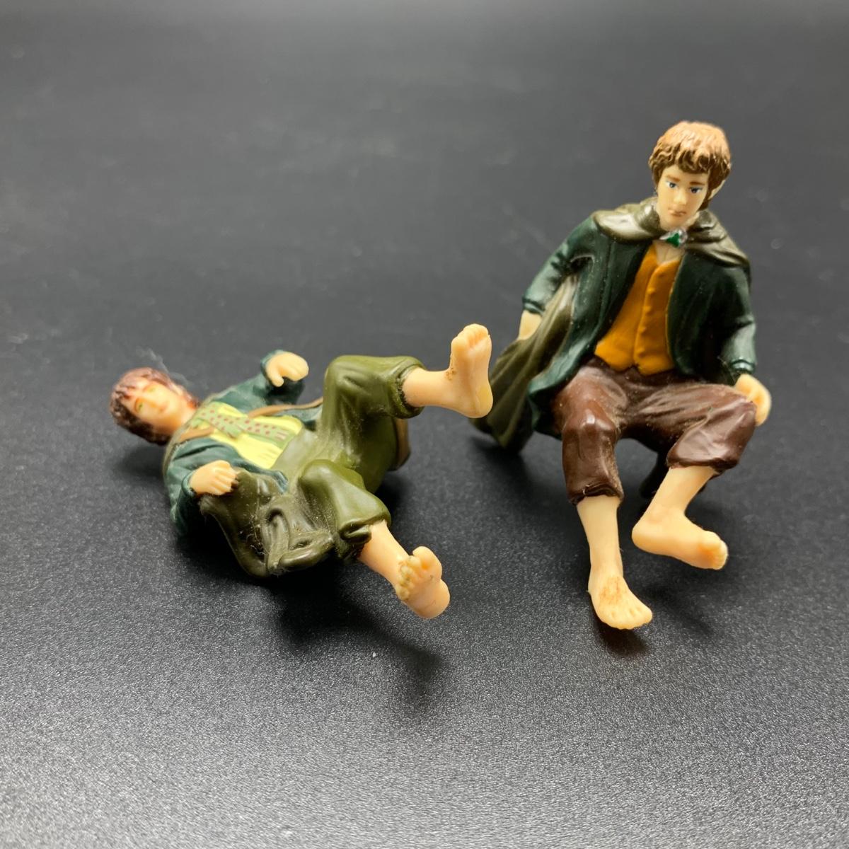 20” tall Gandalf by NECA towers over the eight other figurines in this lot. The large Gandalf and Sauron spoke when turned on. Most of the figurines have a soft plastic feel to them. The other figurines included are a white Gandalf, Treebeard, Sauron, Ringwraith on horse, and small seated Frodo and Bilbo. There are Balrog and Gandalf the Grey game pieces from Sabertooth Games as well.