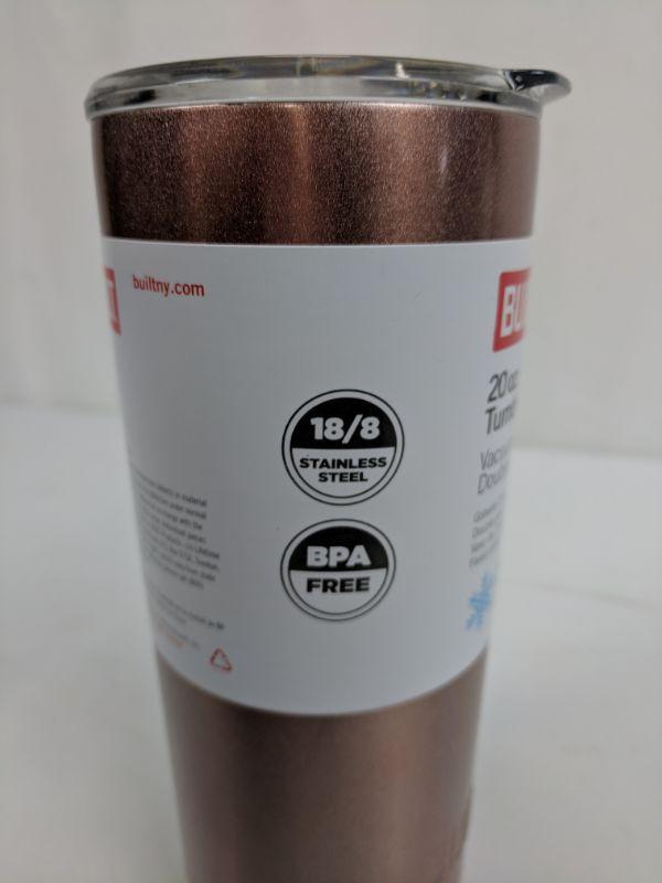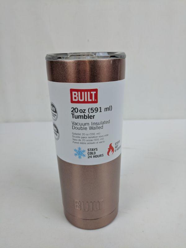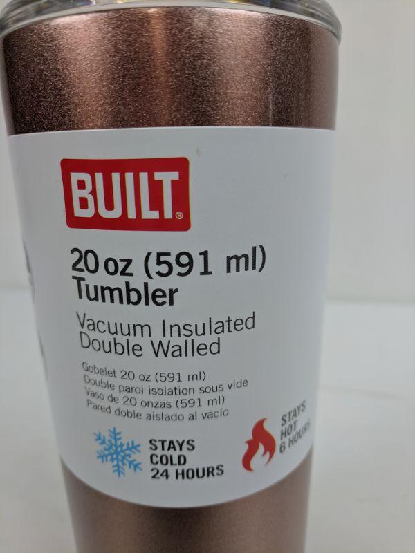 20 oz Rose Gold Tumbler, Built, Stays Cold 24 Hr/Stays Hot 6 Hr, Stainless - New