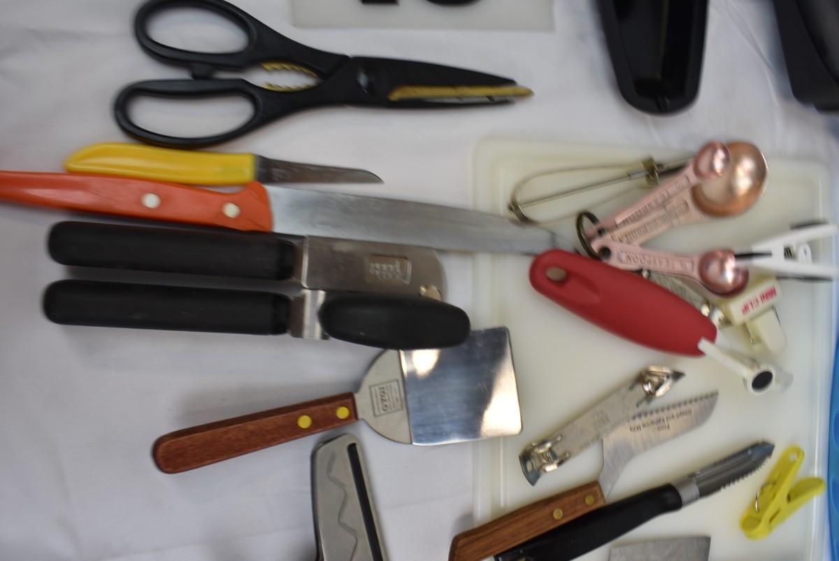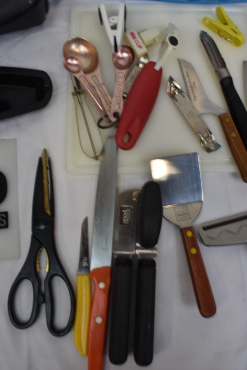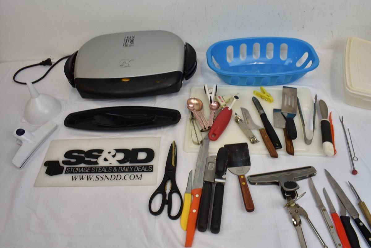 20+ pc Kitchen Lot: George Foreman Grill, Assorted Utensils, Cutting Board