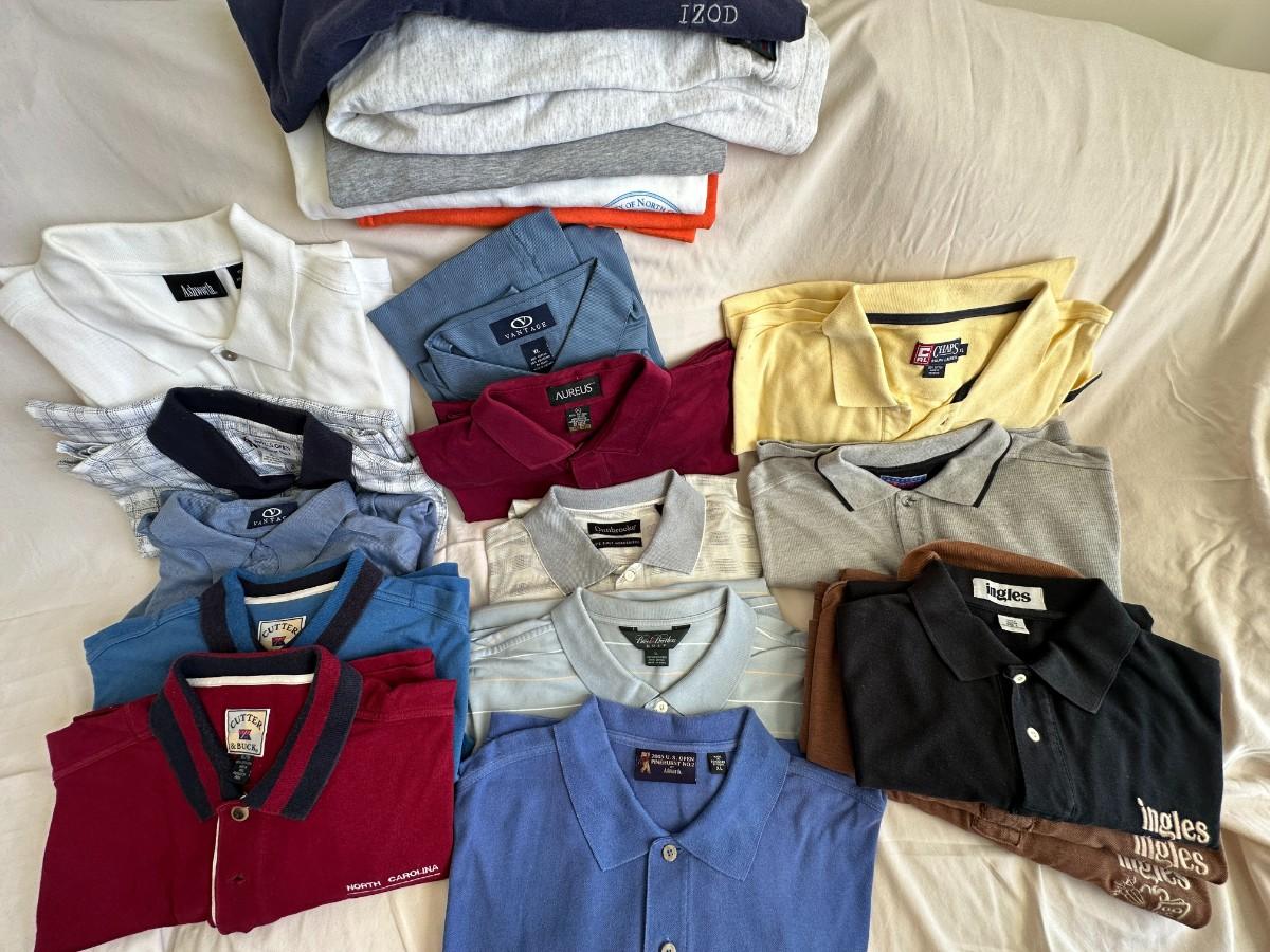 20 Piece Lot Mixed Men's Golf and Polo Shirts, Mostly XL, a Few L