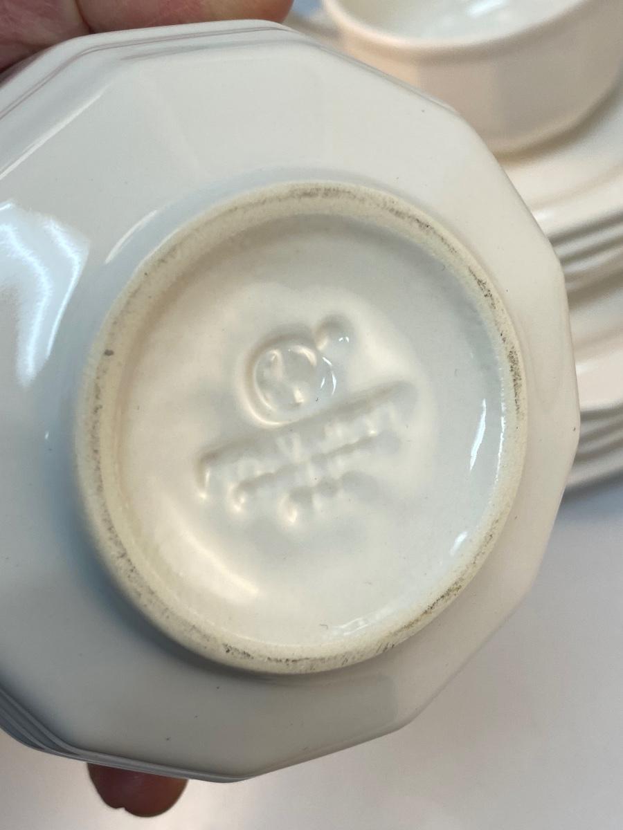20 Piece Pfaltzgraff Heritage White Octagon Dishware Set for 4. In good condition, no chips. Includes 4 each - dinner plate, bread plate, teacup, saucer, coffee mug.