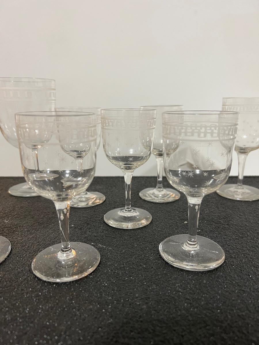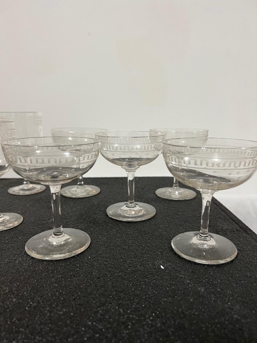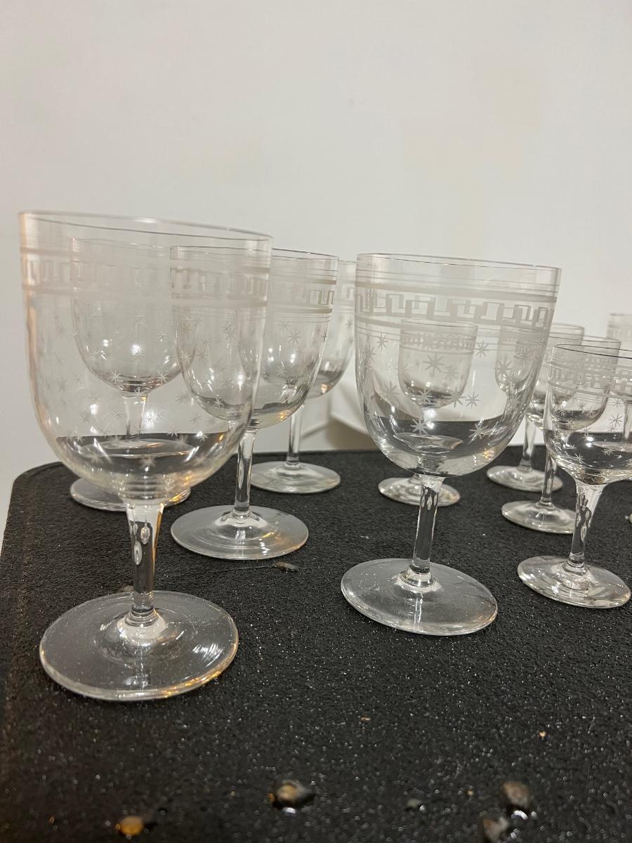 Boston & Sandwich Engraved Greek Roman Key & Stars Flint Glass set of 20!