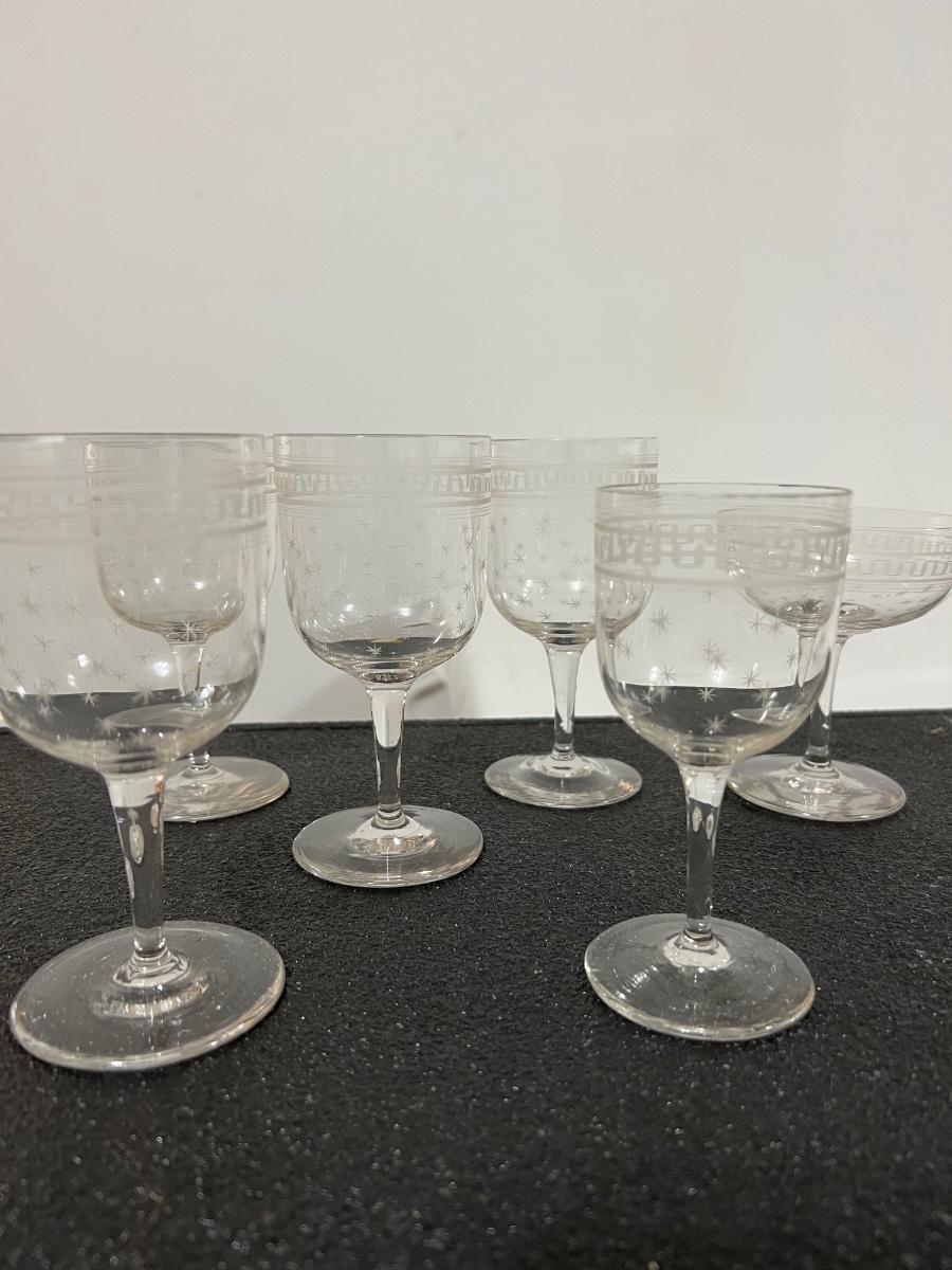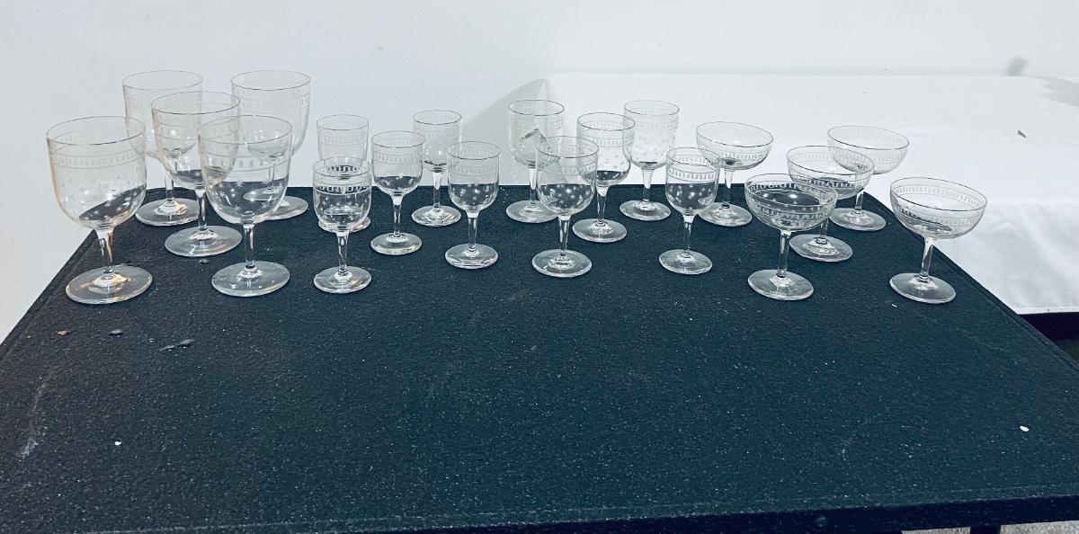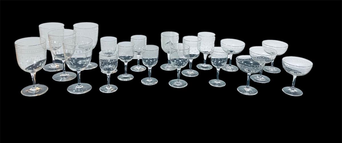 20 Piece Set Boston & Sandwich Engraved Greek Key & Stars Flint Glass set