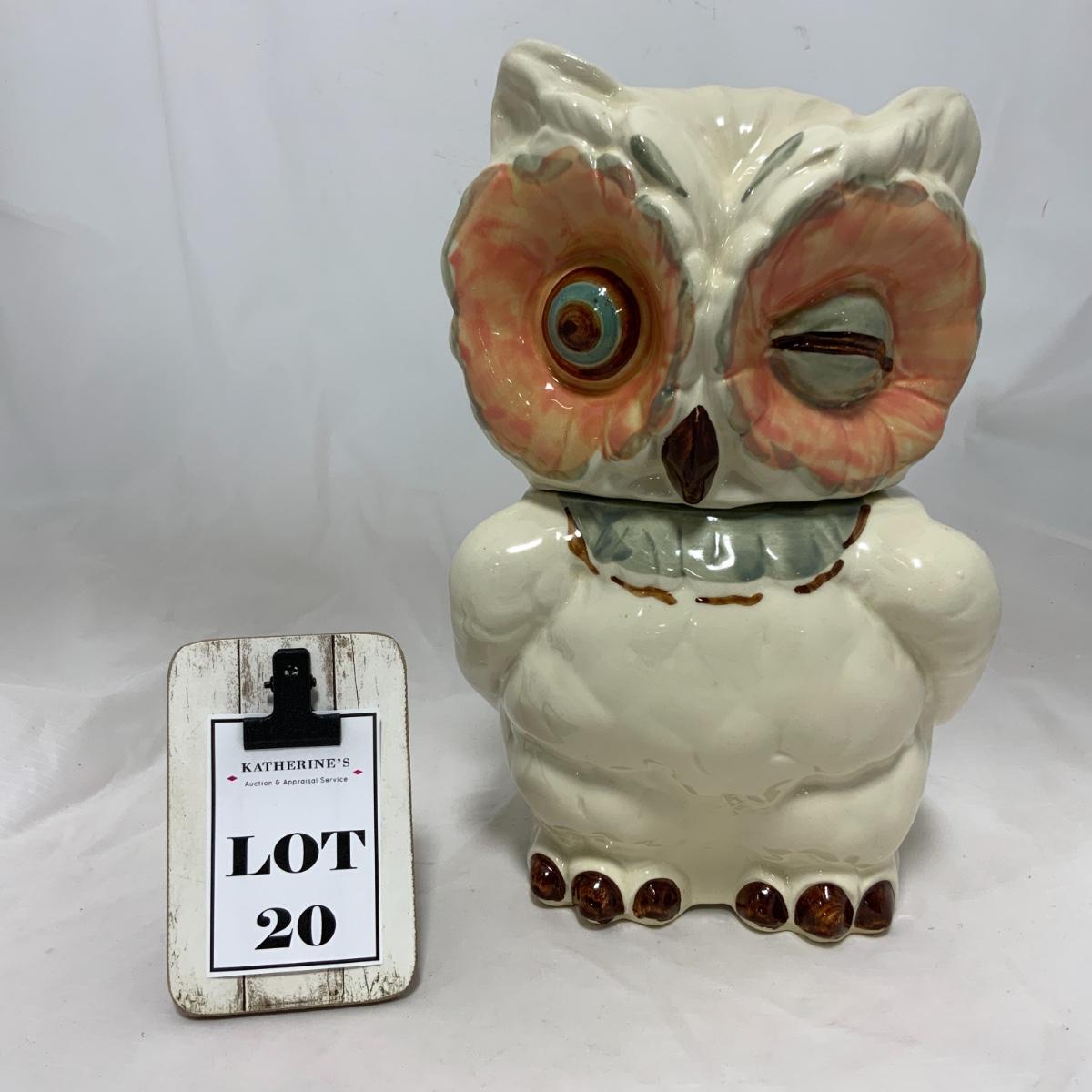 From the Estate of Peter and Alice Radovanovich: Wonderful Winking Owl Cookie Jar produced in the 1940s by Shawnee. Jar is in excellent condition, with no cracks or chips noted. Please see photos for details and condition. ::: Shipping is available on this lot. If you require shipping you must let us know at the close of the auction. We will coordinate with you after the item has been won. Shipping fees will include insurance up to or exceeding the value of all items being mailed. If you have any questions regarding this lot please contact the auctioneer either via this website, by direct email or by phone. PICK UP TIMES and other important information can be found in the TERMS and DESCRIPTION of the auction. Please take a look for pertinent information. Thanks!