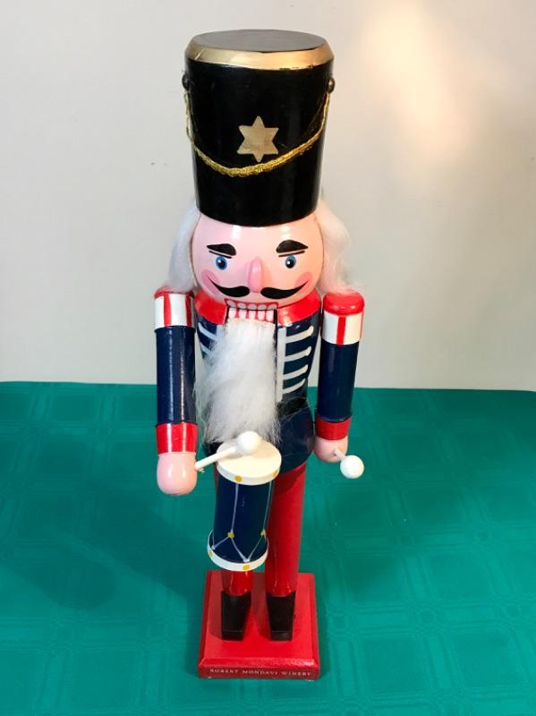Nutcracker by Robert Mondavi Winery. Traditional soldier drummer. Model number 12388. Made of painted carved wood.