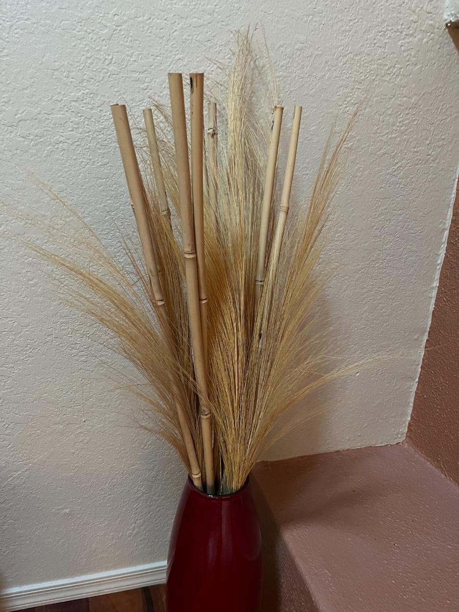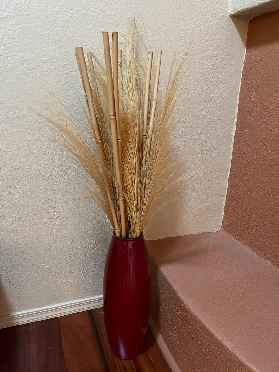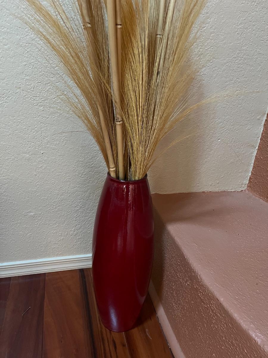 20” Tall Red Vase (with wheat/floral arrangements)