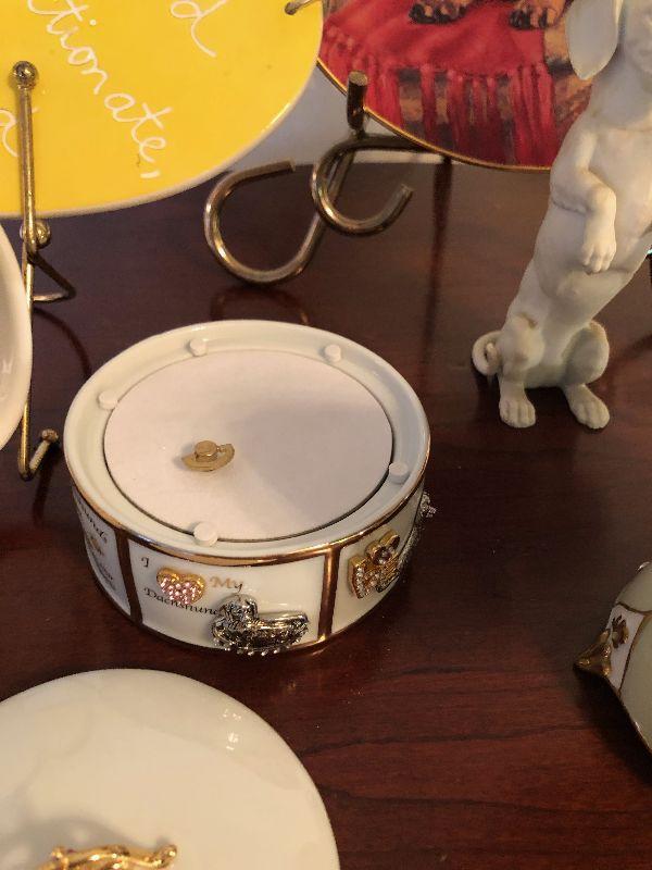 Decorator Plates, Music Boxes, 2 Coffee Cups, *Plate Stands NOT Included*